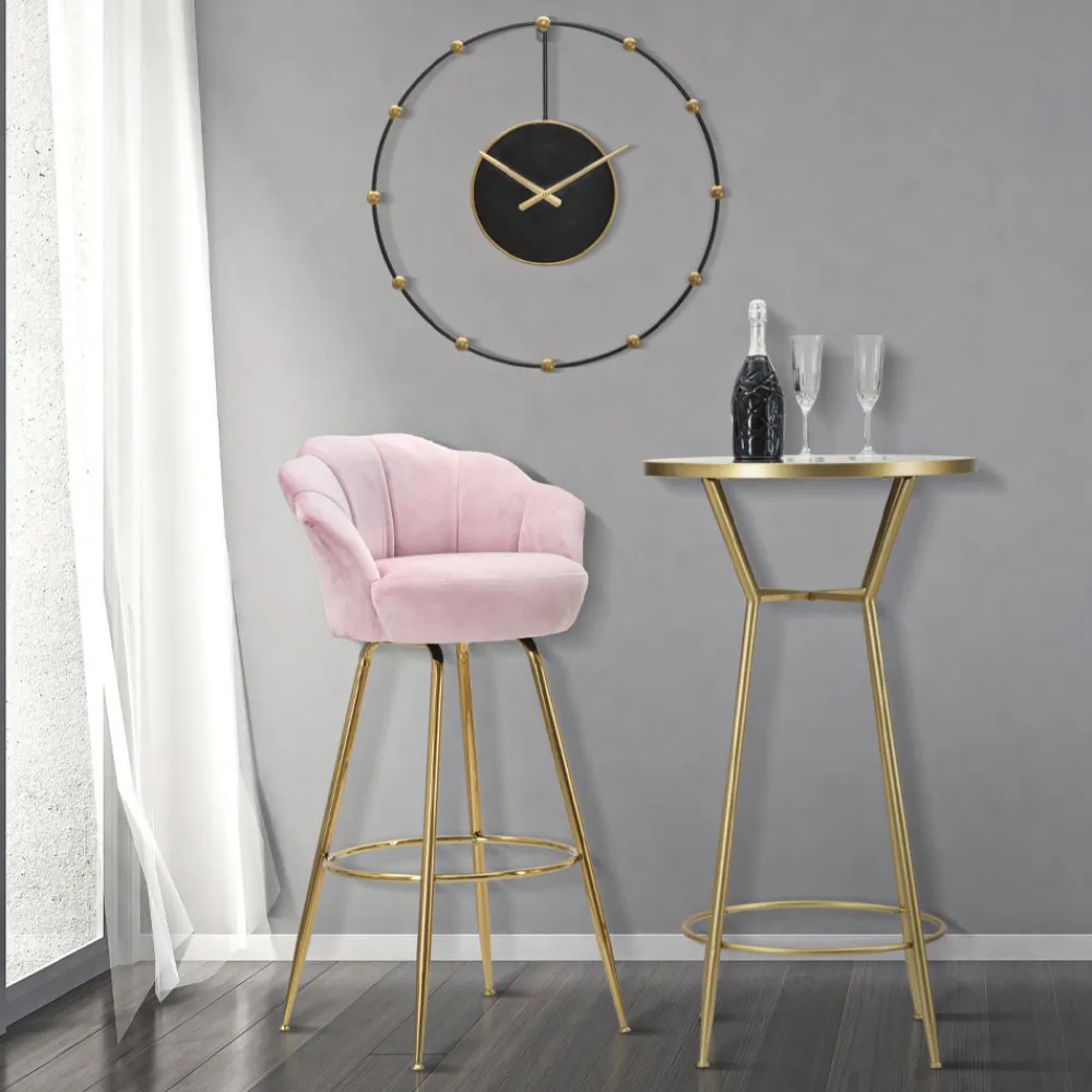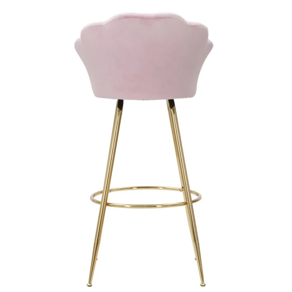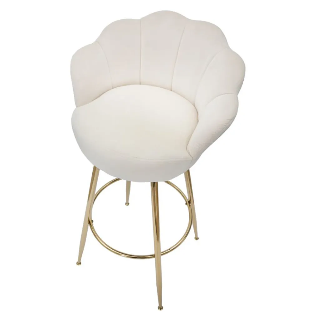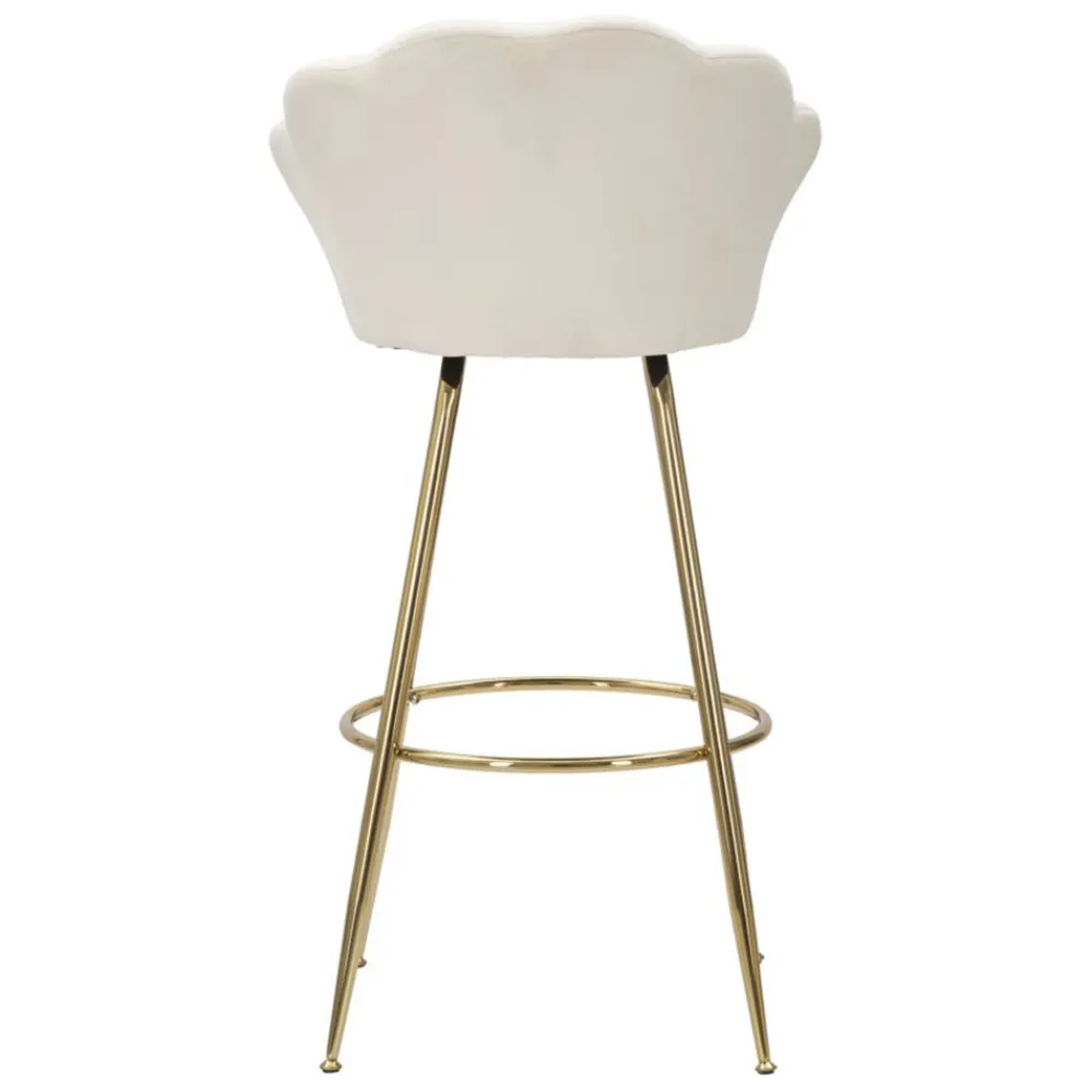 Hoher Barhocker mit goldfarbener Eisenstruktur , ausgestattet mit einer praktischen Fußstütze und einem gepolsterten Sitz mit Stoffbezug. Eleganz und Persönlichkeit vereinen sich in einem einzigen Produkt und verleihen diesem wunderbaren Hocker mit mondäner Seele Leben . Die abgerundete Form der Rückenlehne sorgt für einen einladenden und besonders bequemen Sitz . Die Kombination der ausgewählten Oberflächen bereichert die bereits raffinierte Ästhetik des Produkts mit einem exklusiven und raffinierten Touch, ideal für die Einrichtung von Wohn- oder Objekträumen mit Geschmack und Stil mit einer zeitgenössischen Ästhetik.