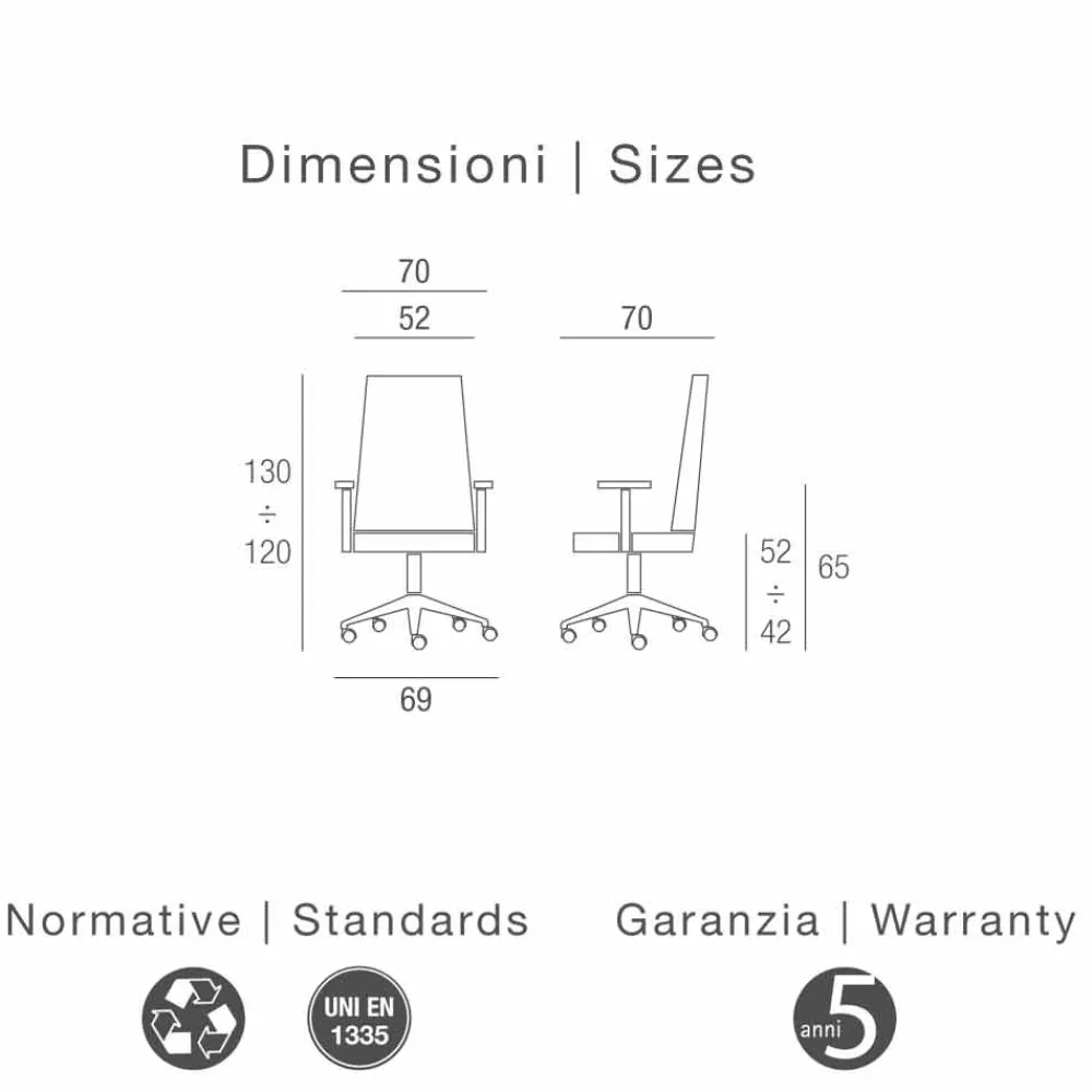 | Maße | L.tot 69cm x L.Sitz 52 cm x H.tot 130/120cm x h. Sitz 52/42cm x h.Armlehne 65cm |