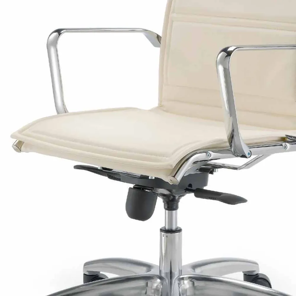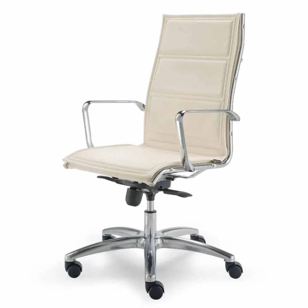 Komplett mit verchromten Aluminium-Armlehnen und einem 5-Speichen-Fuß aus poliertem Aluminium, komplett mit gebremsten Rädern Ø 50 mm.