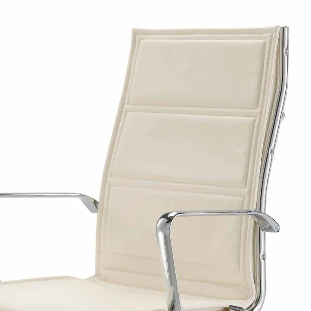 Seine Besonderheit ist die cremefarbene Kunstlederpolsterung und die hochgepolsterte Rückenlehne, die ihn noch komfortabler macht.