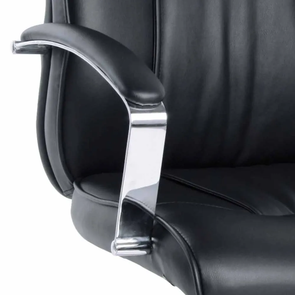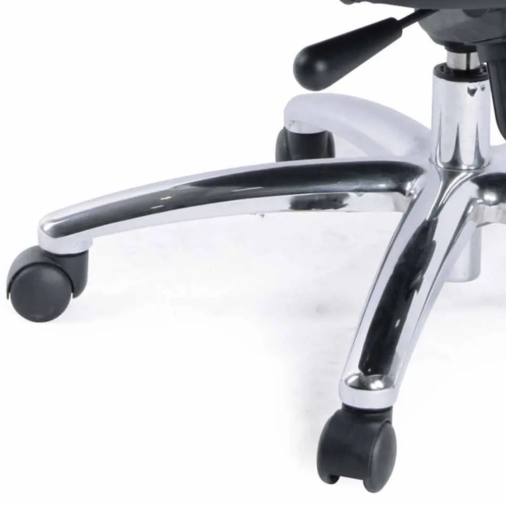 Der Virone- Bürostuhl ist mit einem Drehsitz mit Gasfeder, einer mit schwarzem Kunstleder bezogenen Rückenlehne und schwarzen Ledersitzen ausgestattet. verchromter Metallrahmen mit Rädern . Das Element, das Virone zum Protagonisten Ihrer Räume macht, ist der Kippmechanismus, bei dem Armlehnen, Sitz und Rückenlehne aus einem Stück bestehen. Wenn die Rückenlehne gestützt ist, kippt der gesamte Stuhl, sodass es nicht möglich ist, die verschiedenen Komponenten unabhängig voneinander zu bewegen.