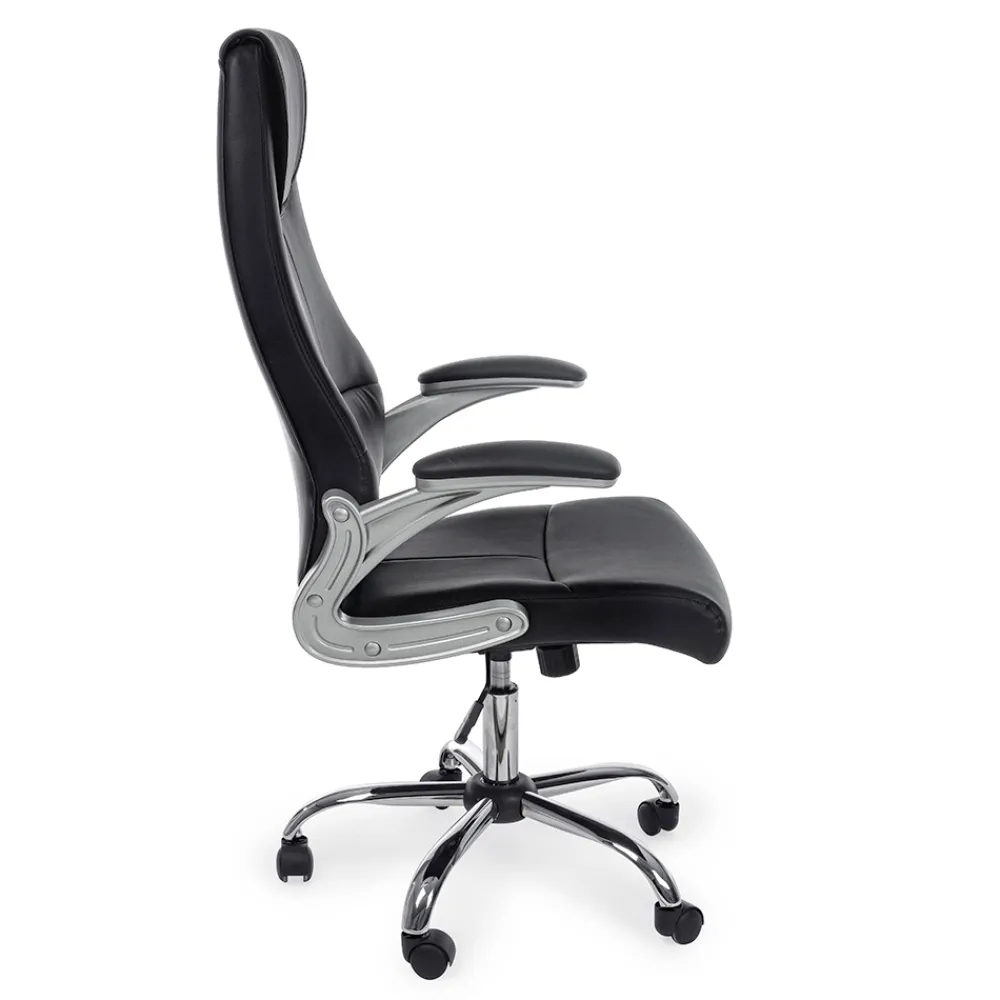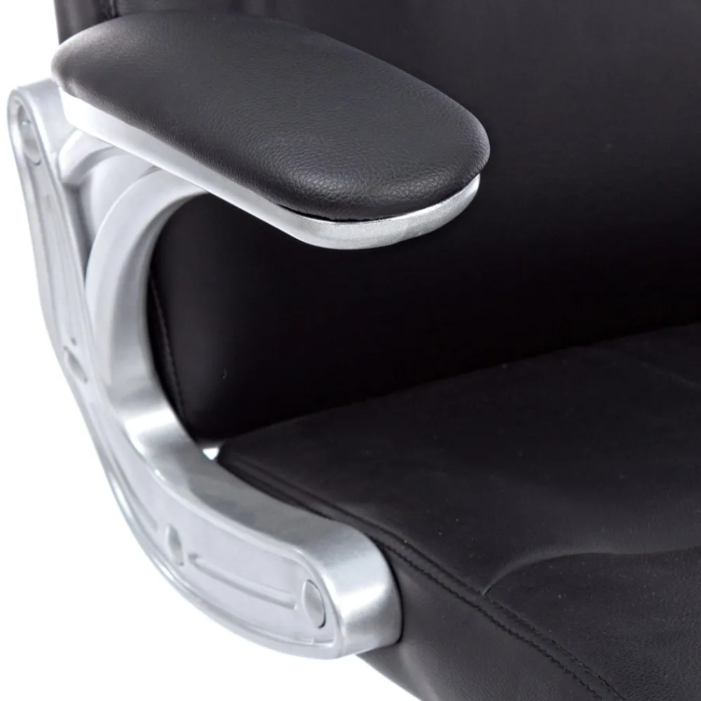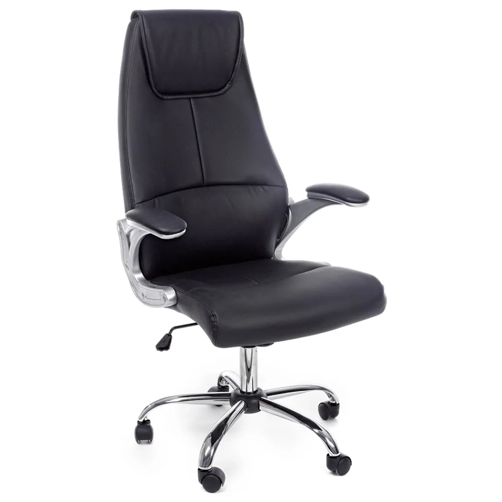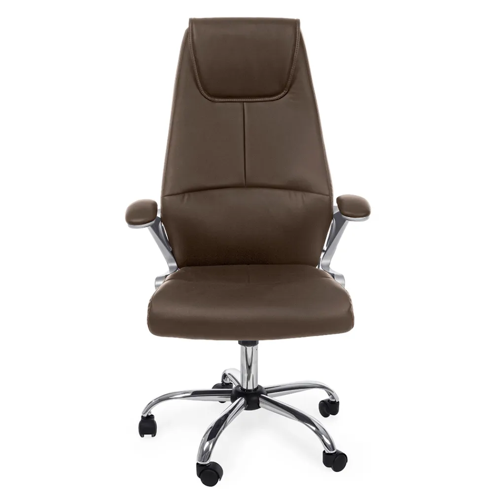 Ergonomischer Bürosessel aus Stahl mit Armlehnen und schwarzem oder braunem Kunstleder.