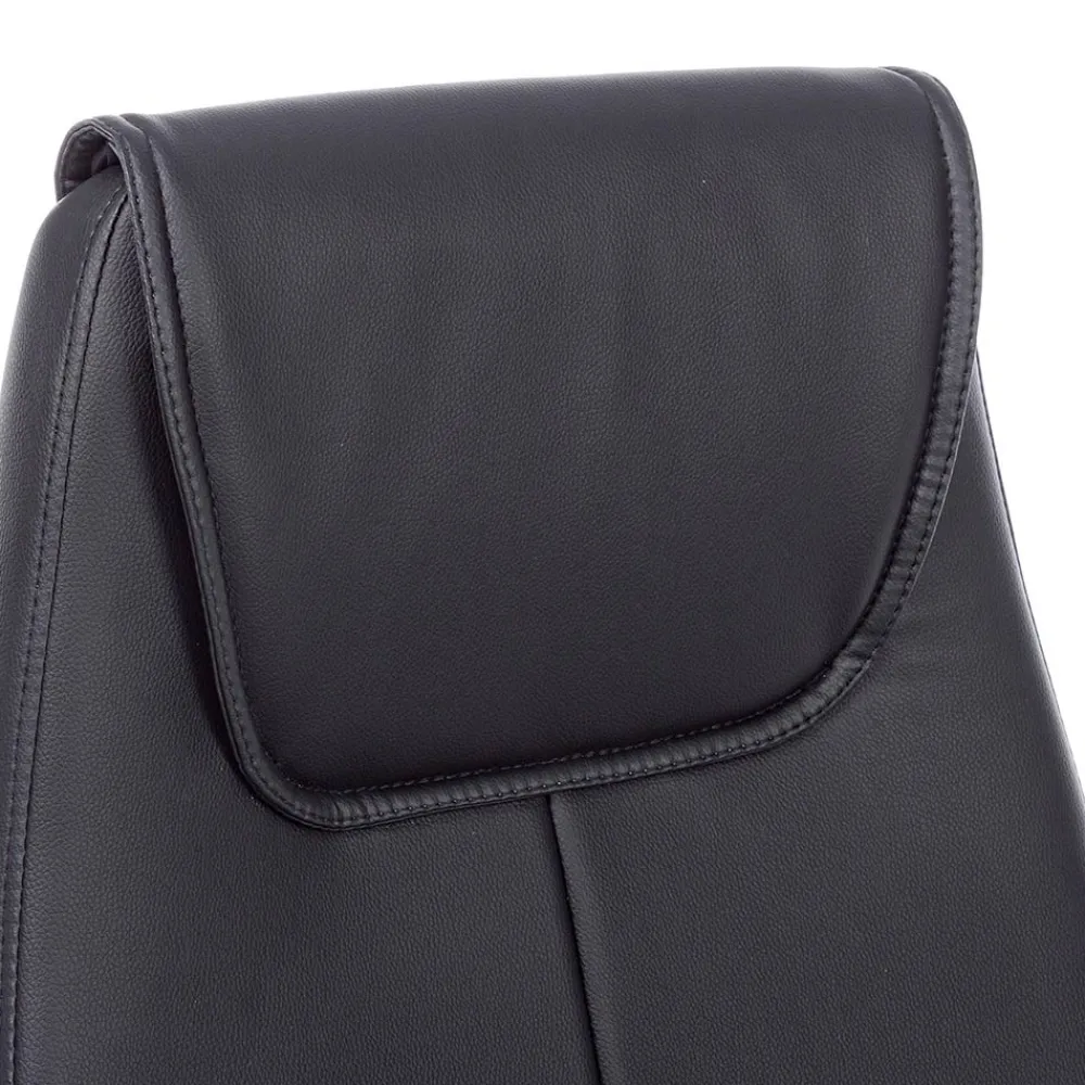 Der höhenverstellbare Sitz und die Rückenlehne sind gepolstert und mit Kunstleder bezogen .