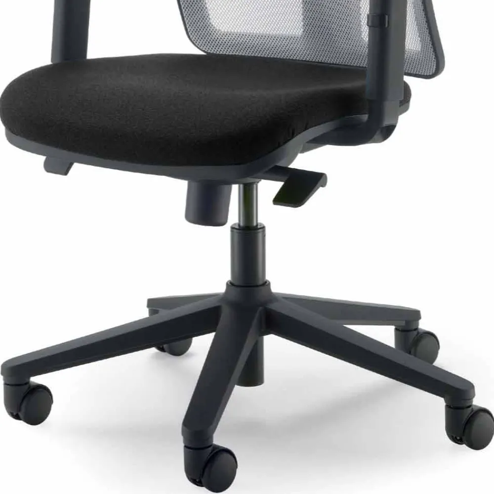Ausgestattet mit einer synchronisierten Zwei-Hebel-Rückenlehne / Sitzmechanik aus Stahl, mit 4 Verriegelungspositionen, Federspannungseinstellung zum Einstellen der Schaukel mittels eines Drehknopfs und einem Anti-Schock-Rückenlehnensicherungssystem.