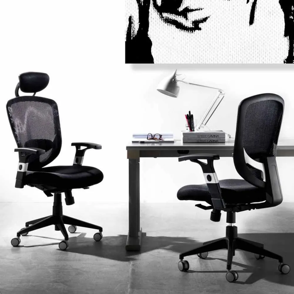 Ausgestattet mit Lordosenstütze, höhenverstellbaren Armlehnen und aluminiumfarbenen Details; Es ist auch in zwei verschiedenen Varianten erhältlich: