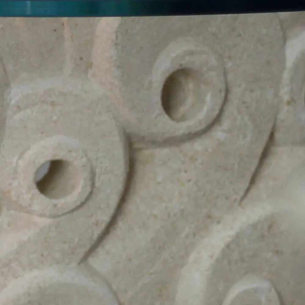Der Stein aus Vicenza besteht vorwiegend aus Calciumcarbonat, das sich aus Lagerungen von Meeresorganismen bildet.