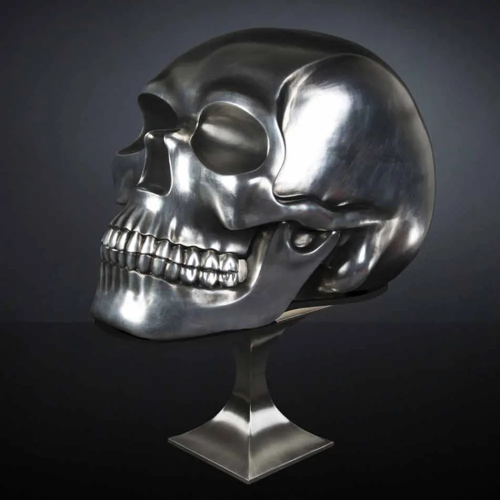 Beeindruckende dekorative Statue in Totenkopfform, vollständig in Italien hergestellt, aus silberfarbener Keramik mit schwarz schattiertem Finish. Ein einzigartiges Möbelstück, das sich durch ein originelles Design auszeichnet, das jeden Raum des Hauses mit einer starken modernen Persönlichkeit ausstatten kann. Seine majestätische Figur ist ideal, um leere Ecken Ihres Hauses zu füllen und mit einem extravaganten Touch für diejenigen zu vervollständigen, die einen exzentrischen und originellen Stil lieben.
