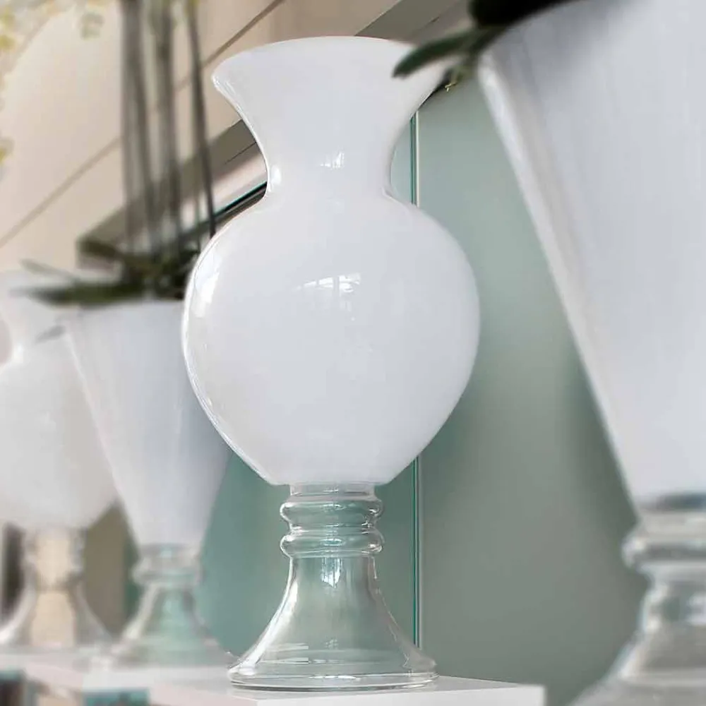 Elegante Vase für Innenräume aus weißem und transparentem Glas Made in Italy.