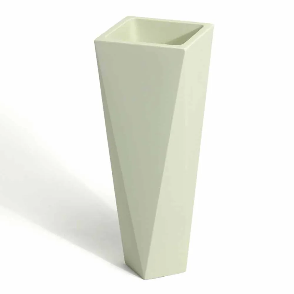 Diese dekorative Vase ist die ideale Lösung, um Design und Eleganz in einem einzigen Produkt zu kombinieren. Perfekte Eigenschaften, um die Einrichtung von Umgebungen mit einem zeitgemäßen Geschmack zu vervollständigen. Das Produkt zeichnet sich durch einfache und klare Linien aus und wird vollständig in Italien aus Polyethylen hergestellt. Es ist in der opaken Version erhältlich, die sich durch hervorragende Beständigkeit gegen Sonne, Stöße und Hitze auszeichnet. In der widerstandsfähigen und hell lackierten Version können Sie Licht- und Reflexionsspiele erzeugen dass sie zu Protagonisten innerhalb der Umwelt oder schließlich in der metallischen Version werden. Diese Vase ist ideal für mittelgroße / kleine Pflanzen und in zwei verschiedenen Größen erhältlich, um alle Anforderungen zu erfüllen und sich besser an unterschiedliche Einrichtungssituationen anzupassen.