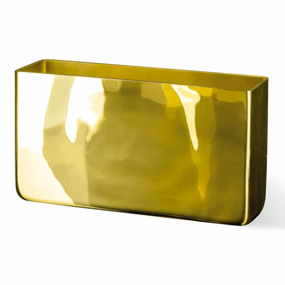 Rechteckige Vase aus mundgeblasenem Glas mit glänzendem Goldfinish, handgefertigt in Italien.
