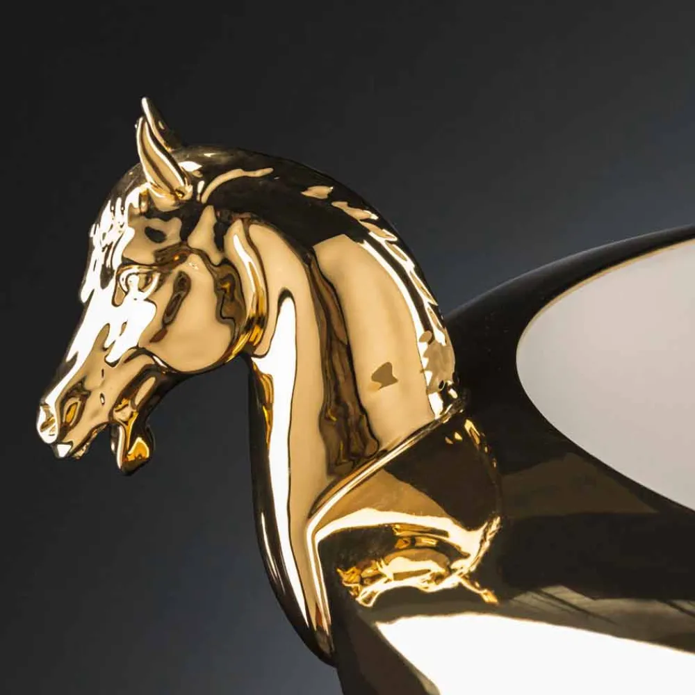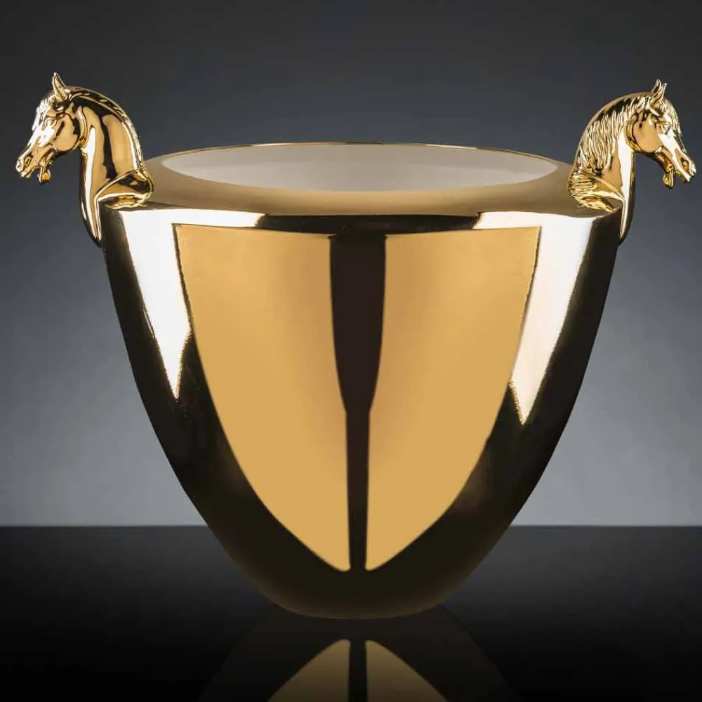 Dekorative Keramikvase, handgefertigt in Italien von Handwerkern, die seit Generationen Experten in der Branche sind. Eine Ästhetik, die durch extrem einfache Linien und Formen unterstrichen wird, die durch die zwei seitlichen Details in Form eines Pferdes bereichert und einzigartig werden, die ihre Originalität betonen und sie zu einer perfekten Lösung sowohl für klassische Umgebungen als auch für modernere Räume machen, in denen sie eine wunderbare Spiel der Kontraste zwischen verschiedenen Stilen. Seine Besonderheit wird durch die handwerkliche Produktion repräsentiert, die seinen Wert und Wert erhöht, um ein exklusives und hochwertiges Ergebnis zum Leben zu erwecken. Ein ideales Design für die unterschiedlichsten Umgebungen, von der Wohnungseinrichtung bis hin zu Hotels, Restaurants, Objektbereichen, Spas, aber auch als Rahmen für Veranstaltungen und Hochzeiten.