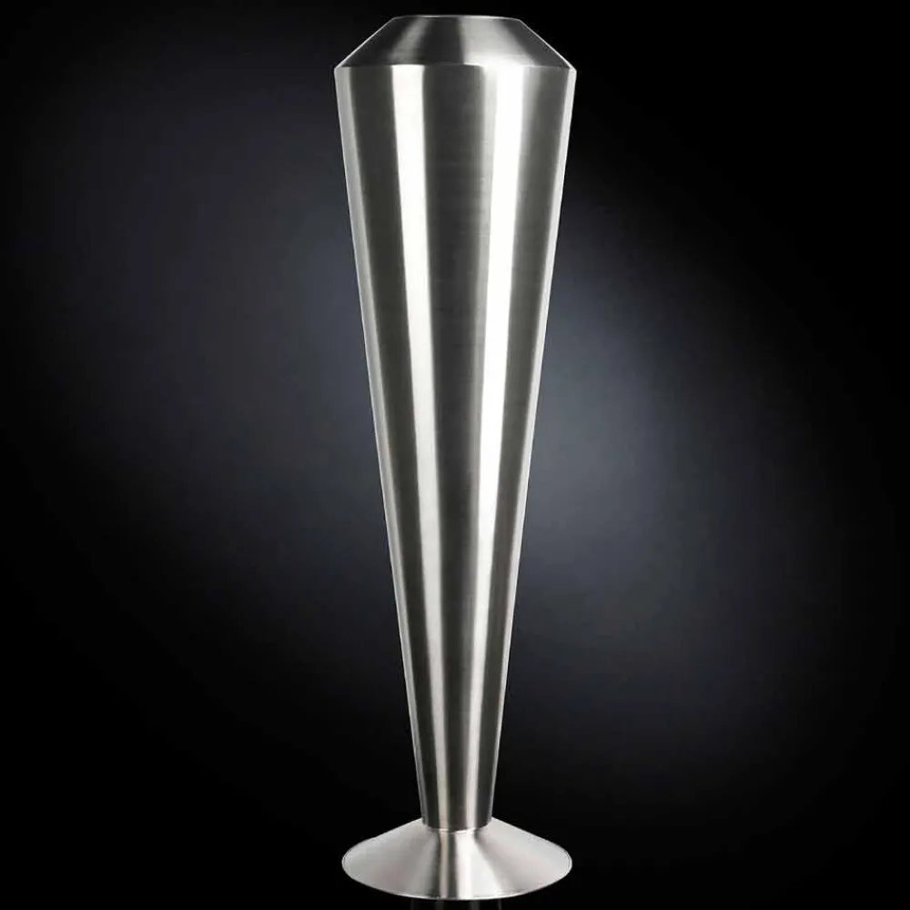 Dekorative Innenvase aus satiniertem Stahl, hergestellt in Italien.