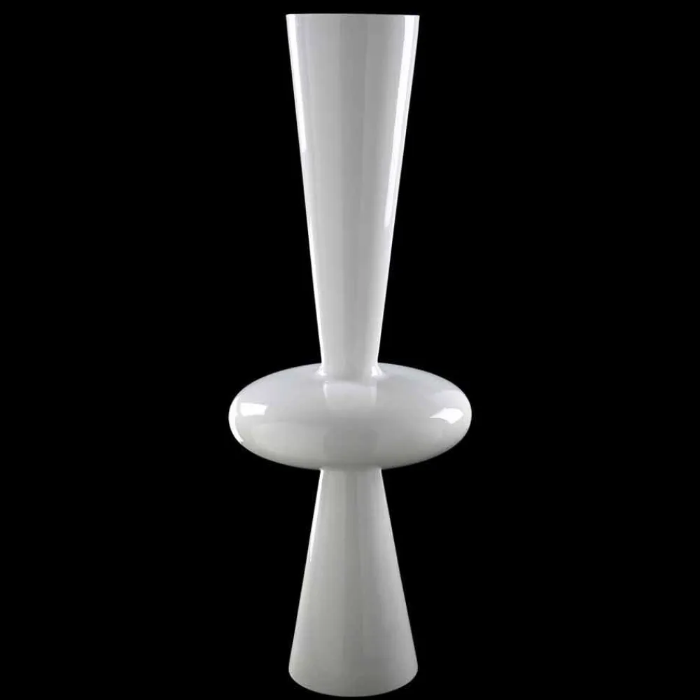 Hohe Vase für Innenräume aus weißer Keramik, handgefertigt in Italien. Originelle und fast futuristische Formen prägen die Ästhetik dieser modernen und avantgardistischen Ergänzung, die dank einer starken kreativen Persönlichkeit und einem einzigartigen Design alle Blicke auf sich zieht, ideal für diejenigen, die ihre Räume gerne exklusiv und raffiniert gestalten. Die Verwendung von Keramik und handwerkliches Können unterstreichen ihren Wert und Wert, indem sie ein hochwertiges Dekorationselement bieten. Ein idealer Stil für die unterschiedlichsten Umgebungen, von der Wohnungseinrichtung bis hin zu Hotels, Restaurants, Objektbereichen, Spas, aber auch als Rahmen für Veranstaltungen und Hochzeiten.