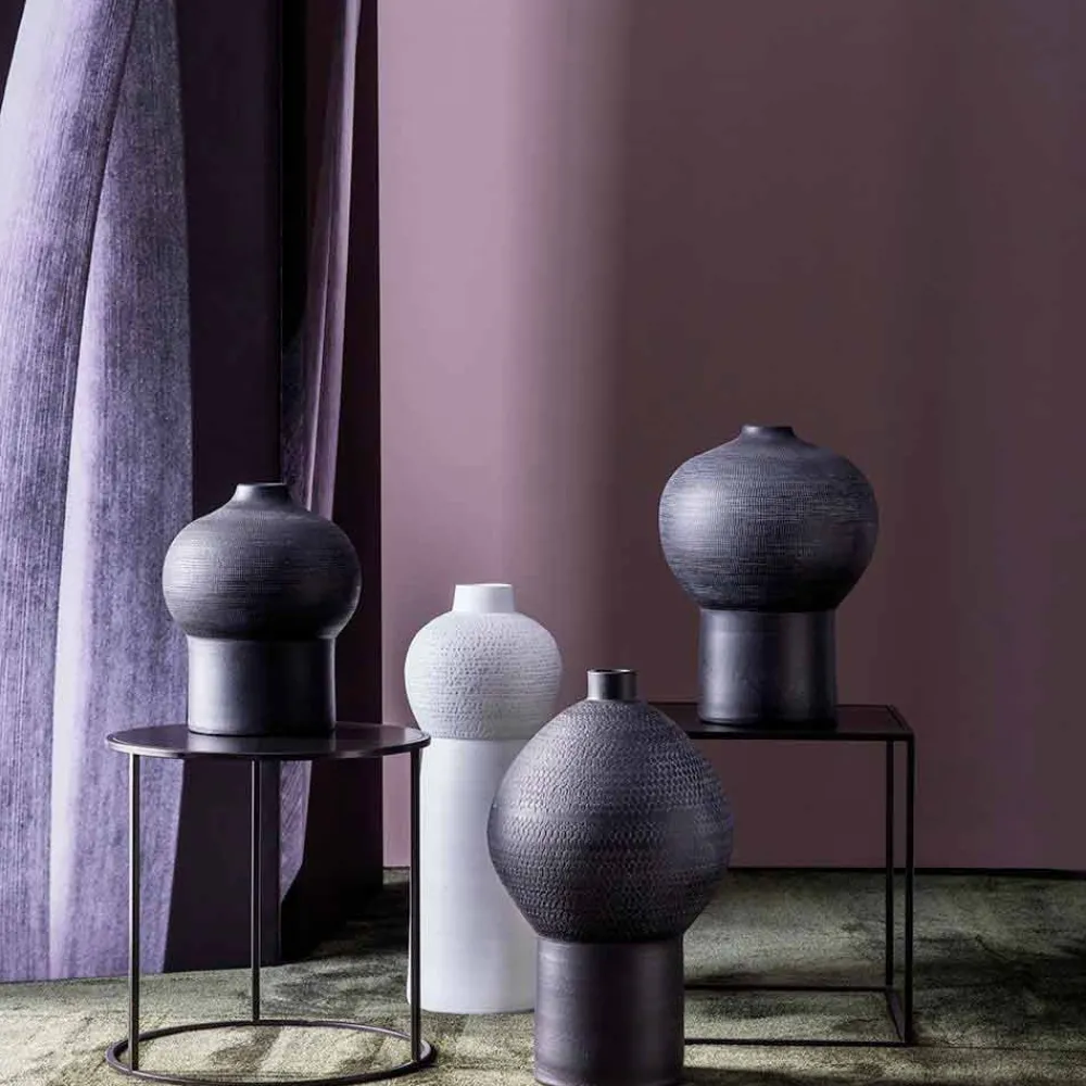 Komposition aus 4 eleganten dekorativen Vasen aus Keramik in schwarz-weißer Ausführung. Konzipiert und konzipiert für diejenigen, die es lieben, ihre Räume mit Persönlichkeit zu dekorieren, erweist sich diese Einrichtungslösung als besonders vielseitig und daher ideal für Wohnumgebungen und Büros oder Objektbereiche. Seine Besonderheit wird durch das wunderbare Spiel verschiedener Größen, Höhen und Farben repräsentiert, das eine einzigartige und exklusive Harmonie im Raum für ein zeitgemäßes und elegantes Ergebnis schafft.