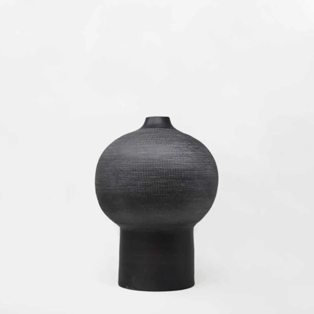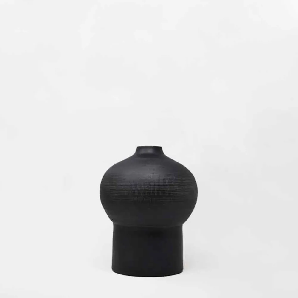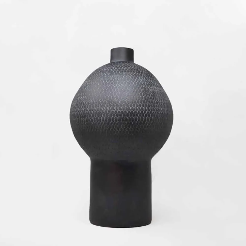 Zusammensetzung von dekorativen Vasen aus schwarzer und weißer Keramik.