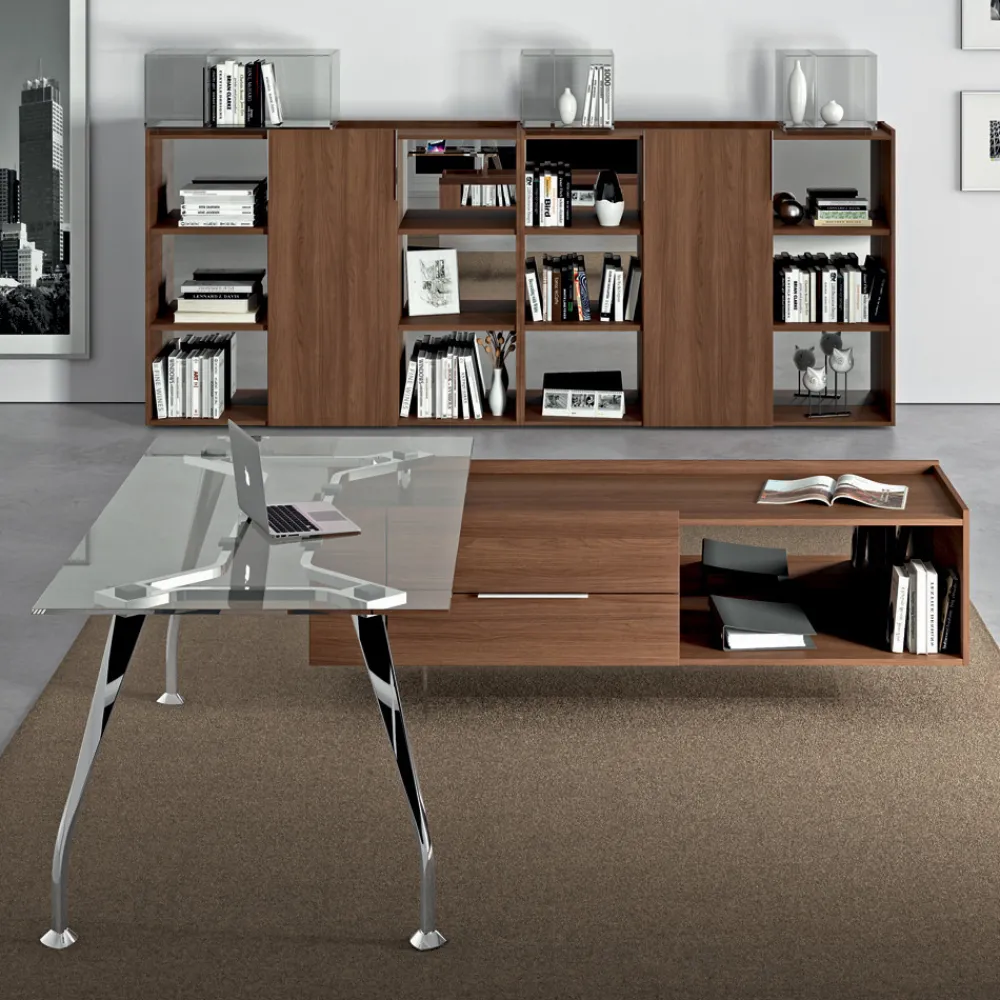 Chefschreibtisch aus Glas mit integriertem Schrank