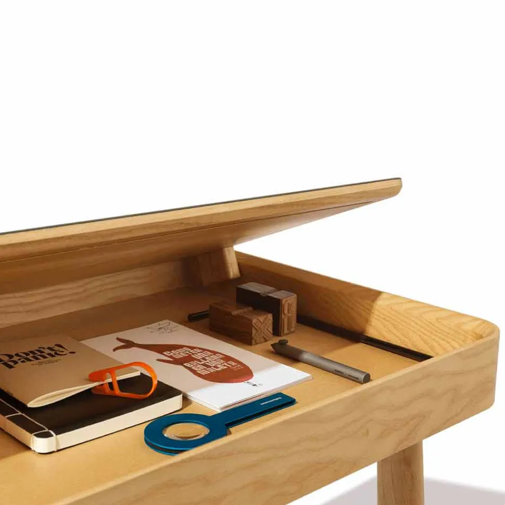 Massivholz-Schreibtisch mit Schiebeplatte und Staufach Made in Italy.