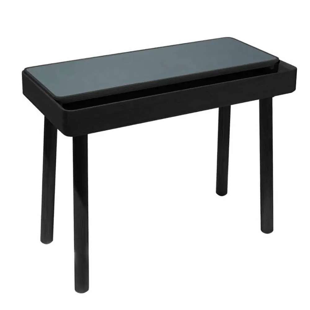 In Italien hergestellter Schreibtisch mit massiver Eschenholzstruktur , ausgestattet mit einem festen Behälterfach, auf dem eine zu öffnende Platte mit erdölgrünem Linoleum platziert ist, die je nach Aktion und Verwendung nach Belieben gleiten kann. Mit einer einfachen Geste können Dokumente, Stifte oder anderes Zubehör im Inneren des Fachs aufbewahrt und organisiert werden, das eine Neuinterpretation sowie eine innovative Alternative zur klassischeren Schublade darstellt. Die Oberseite gleitet auf 45°-Nuten, die eine unterschiedliche Positionierung, Selbstzentrierung und Gleiten ermöglichen, wodurch sie gleichzeitig die hohe Qualität der für ihre Realisierung ausgewählten Materialien wahrnimmt. Zusammen mit der starken funktionalen Seite hat dieser Schreibtisch ein exklusives Design, das sich durch weiche und essentielle Linien und Formen auszeichnet, die die Ästhetik des Produkts auf nüchterne und moderne Weise bereichern, um Ihre Wohnräume zu vervollständigen und die ganze Eleganz mit sich zu bringen . aus Holz und seiner wunderbaren Maserung.