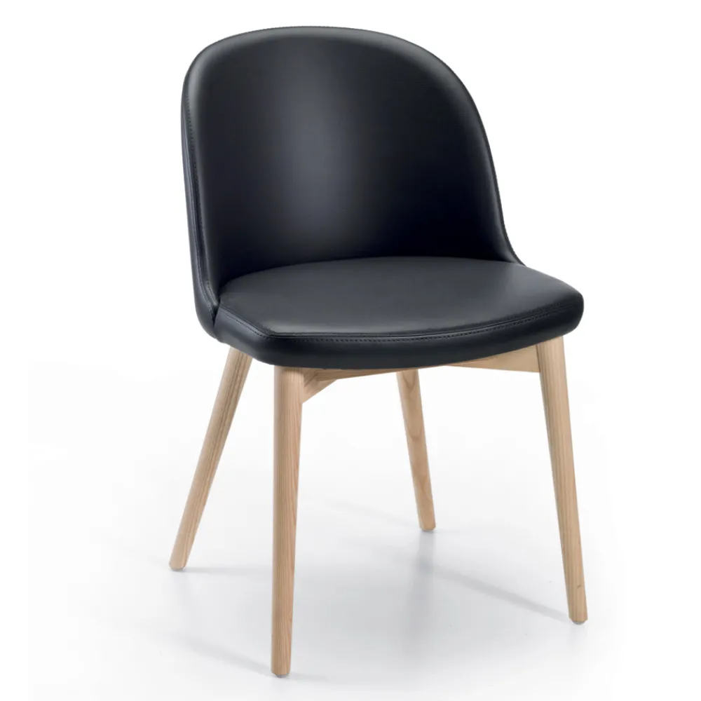 2 Wohnzimmerstühle aus Öko-Leder und Holz, hergestellt in Italien