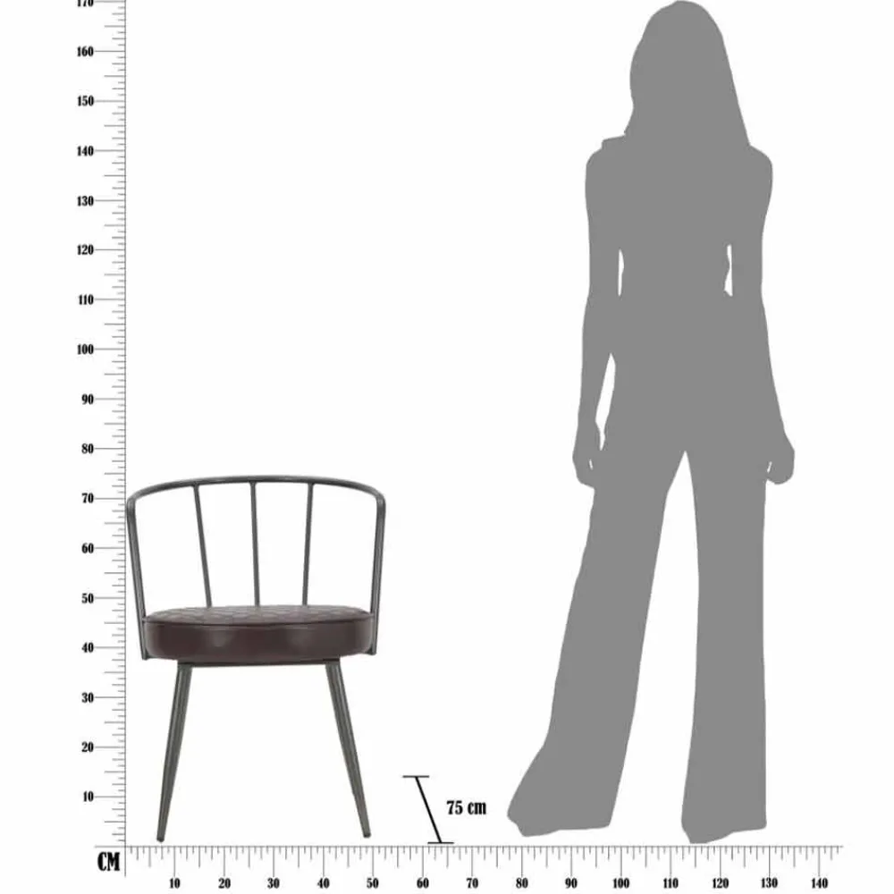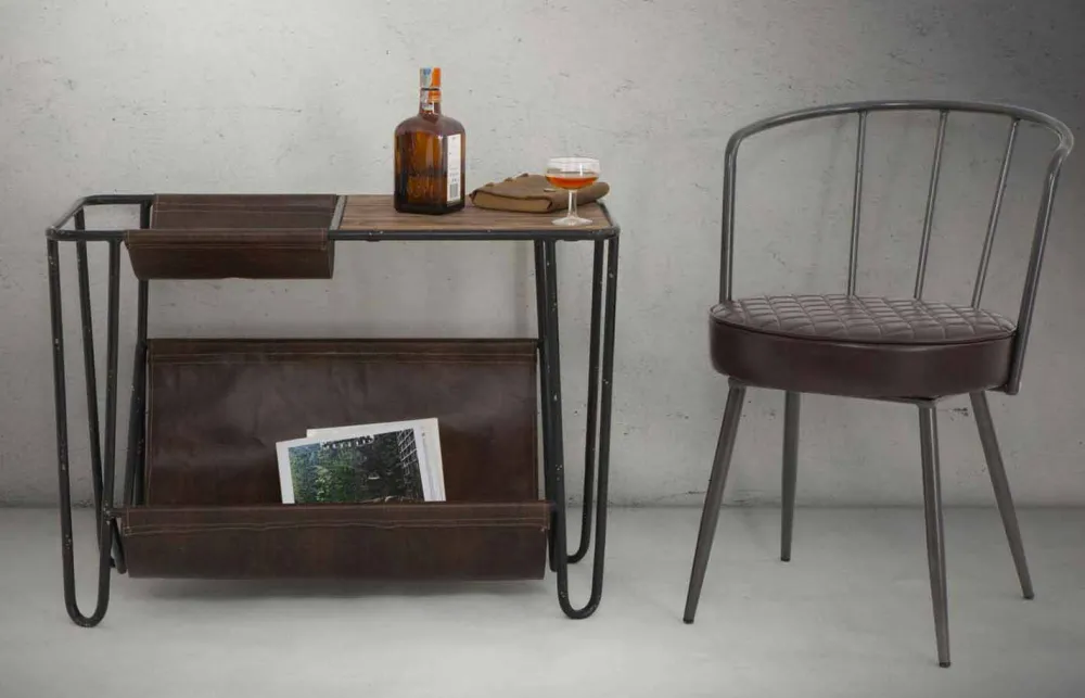 Moderner Sessel im Industriedesign aus Eisen und Kunstleder.