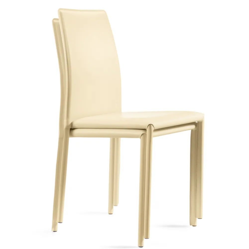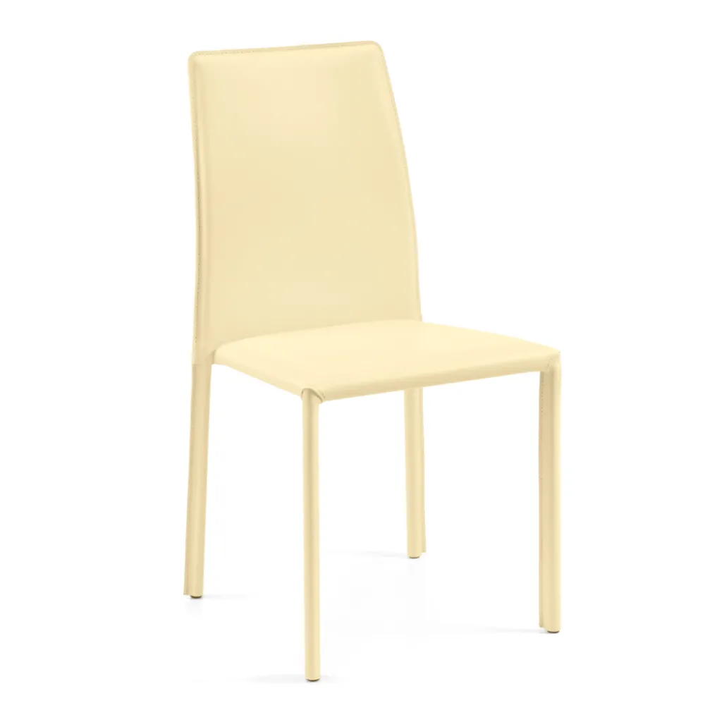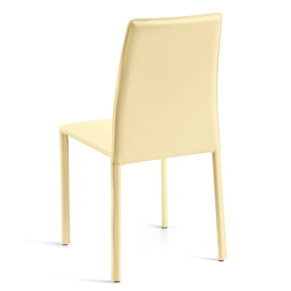 Esszimmerstuhl mit Stahlrohrstruktur, vollständig mit elfenbeinfarbenem Leder bezogen, vollständig in Italien hergestellt.