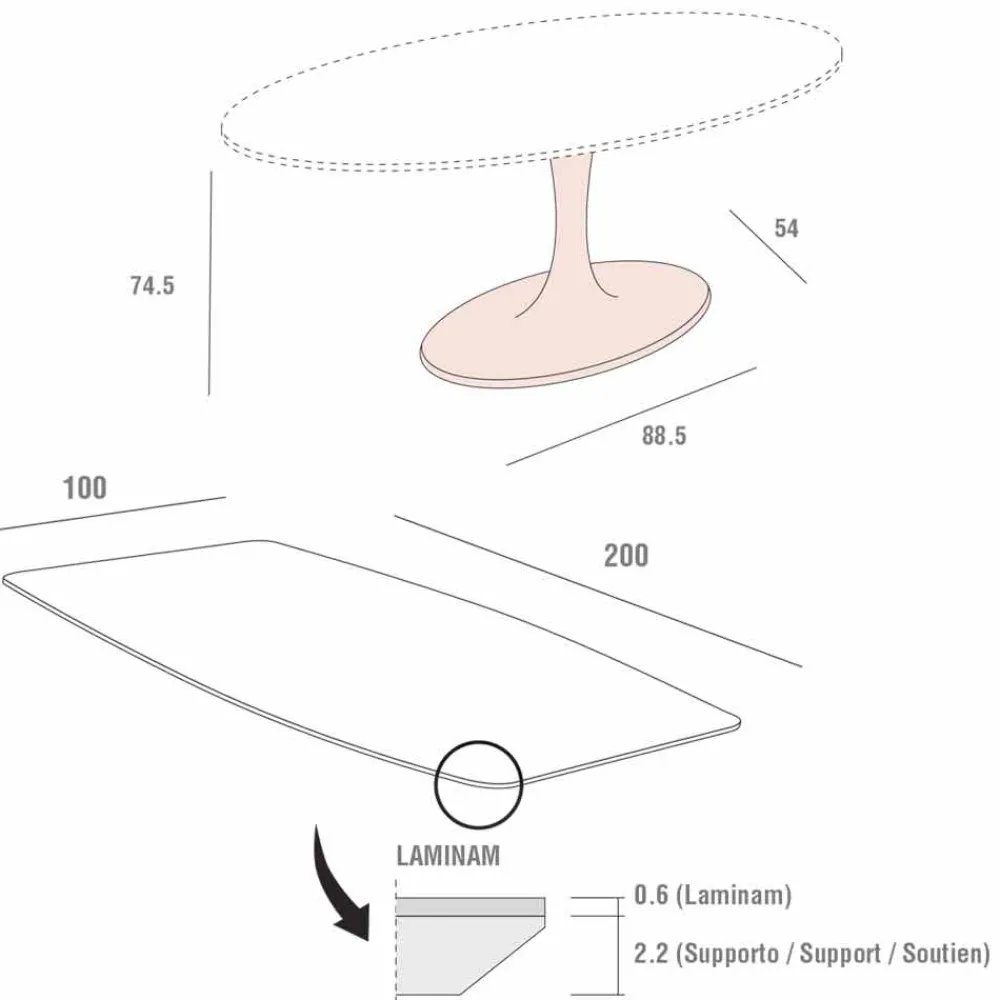 | Material Tischplatte | Laminam |