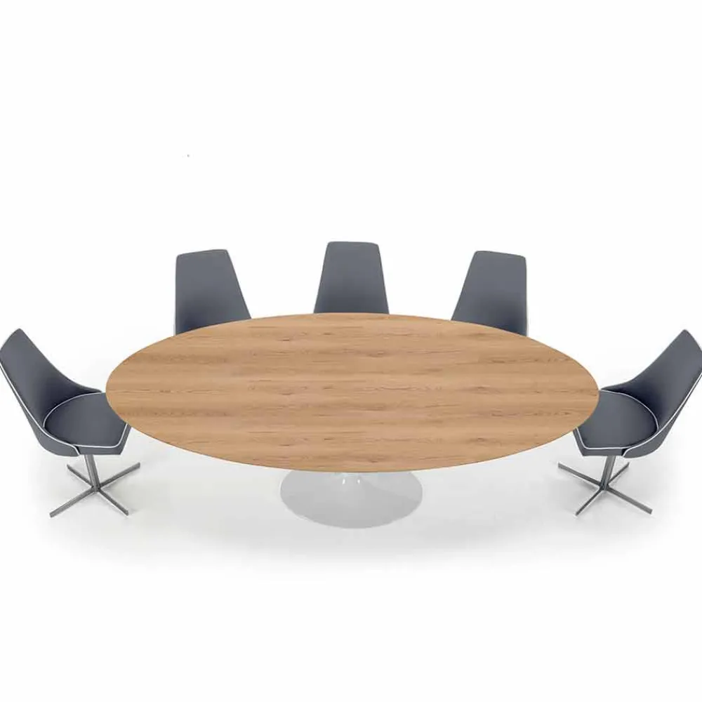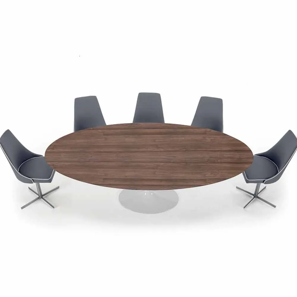 Ovaler Esstisch, hergestellt in Italien aus Laminat und Aluminium, Luxus.