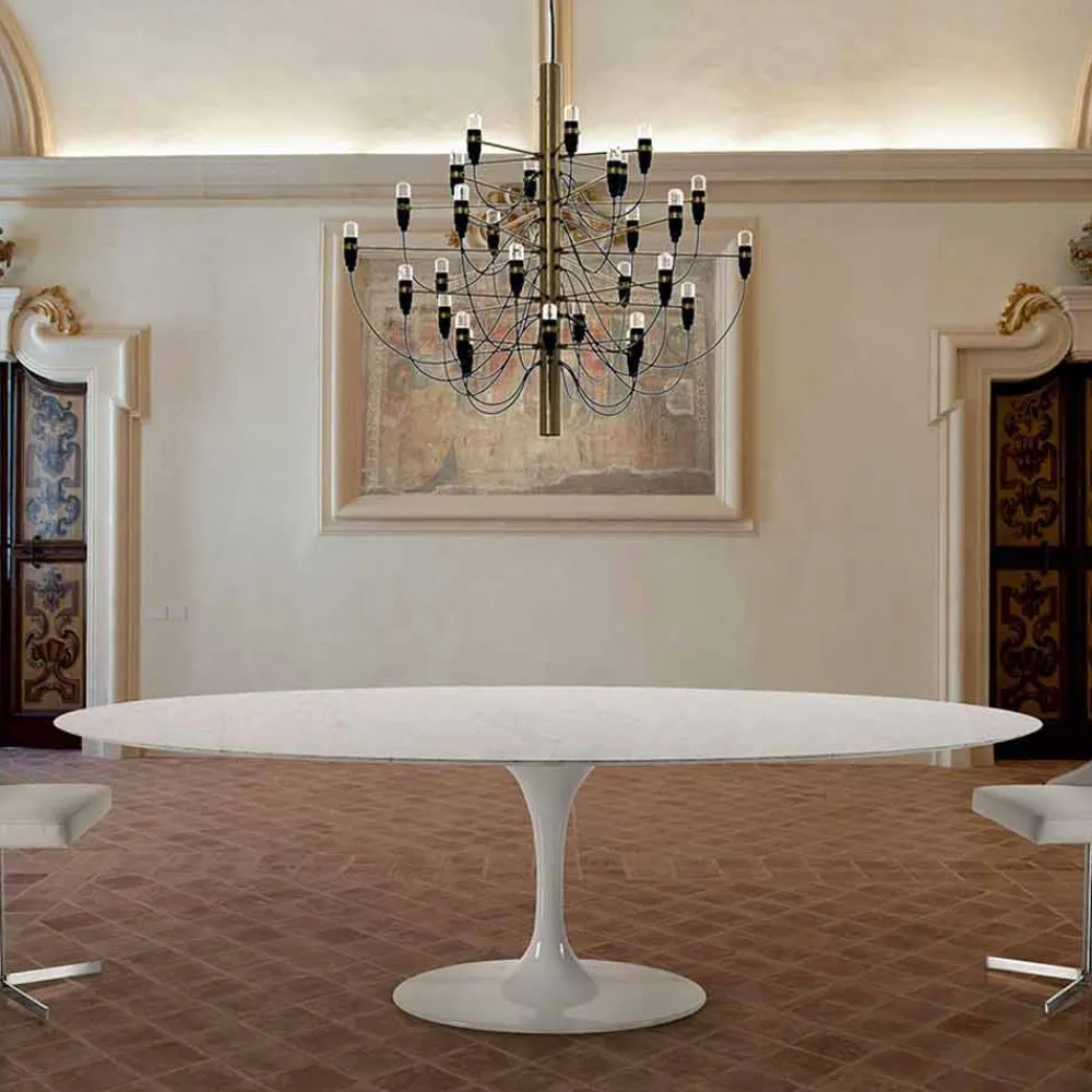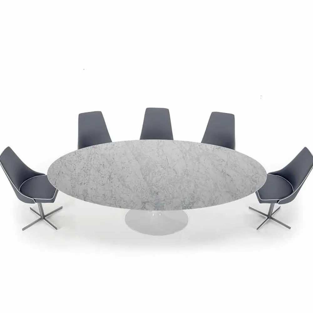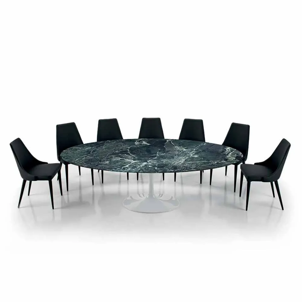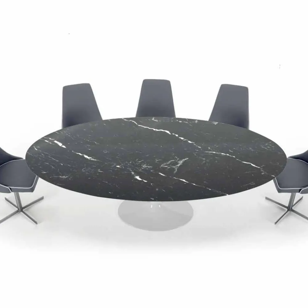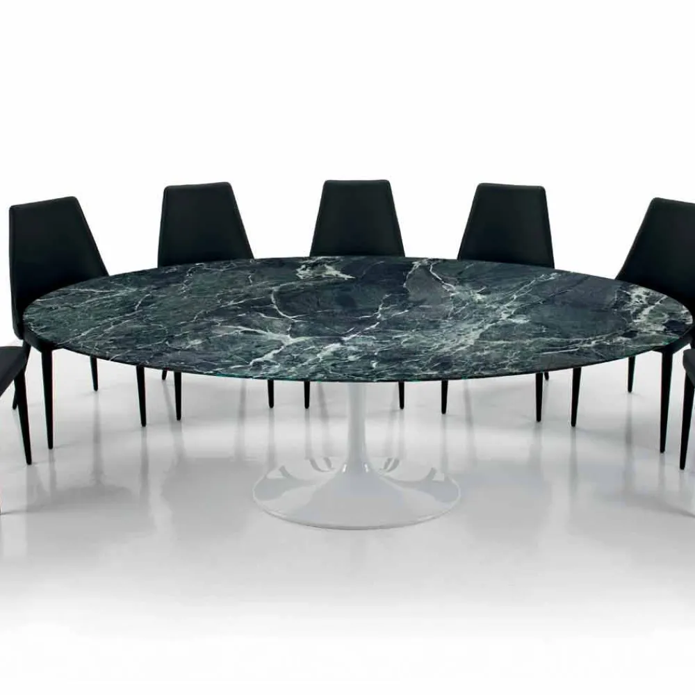 Ovaler Tisch für das Wohnzimmer mit Platte aus Carrara- oder Nero-Marquinia-Marmor, handgefertigt in Italien.