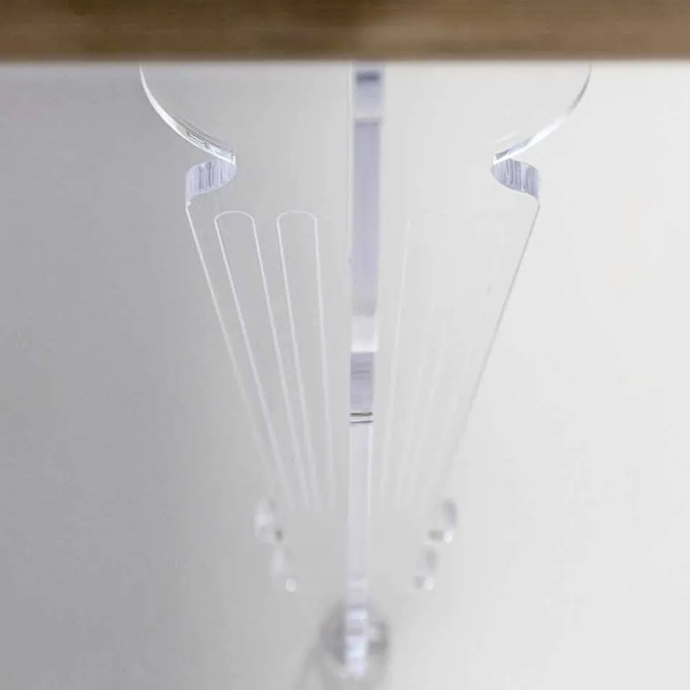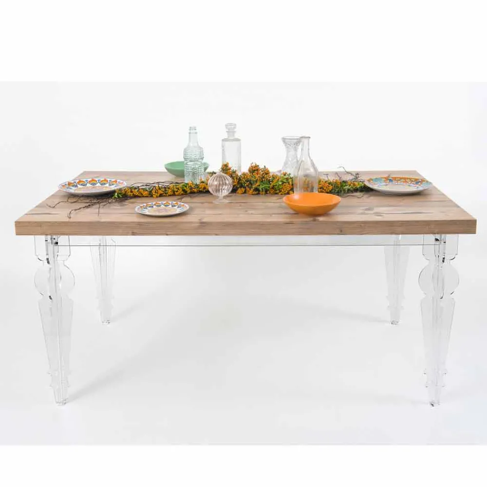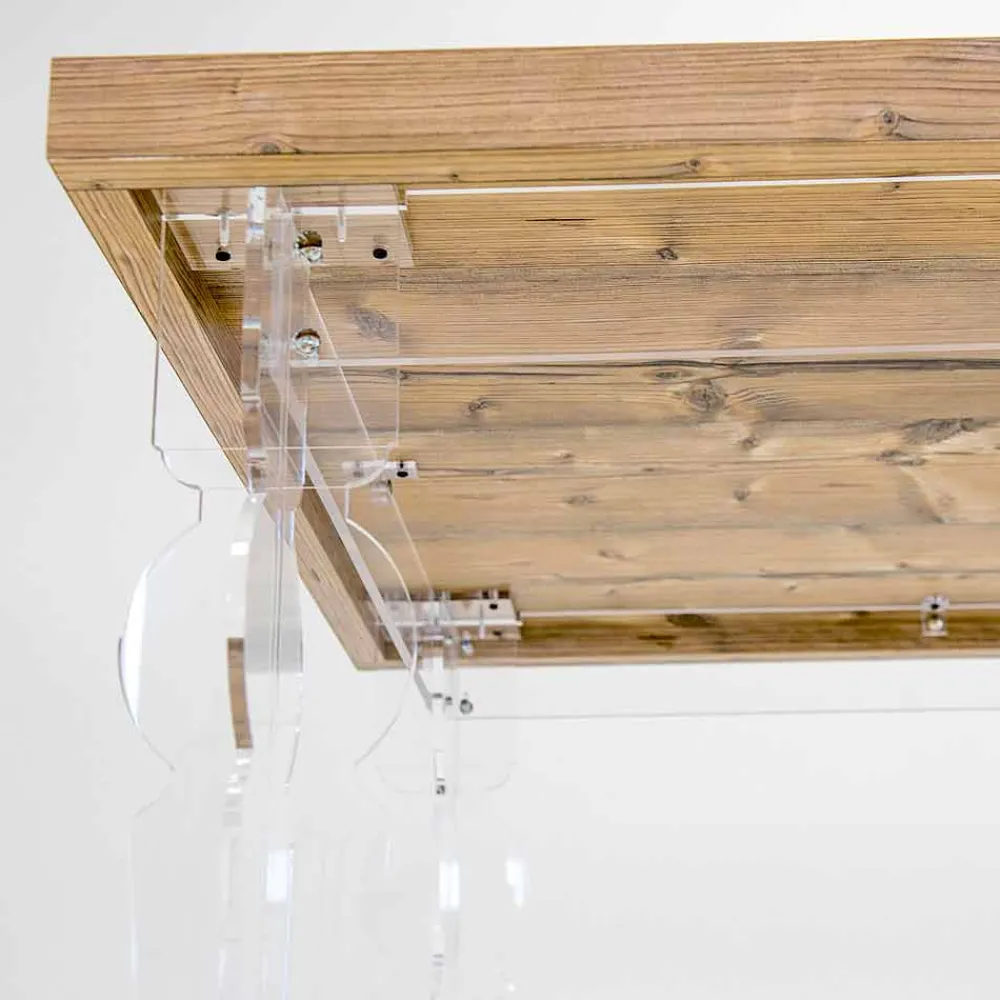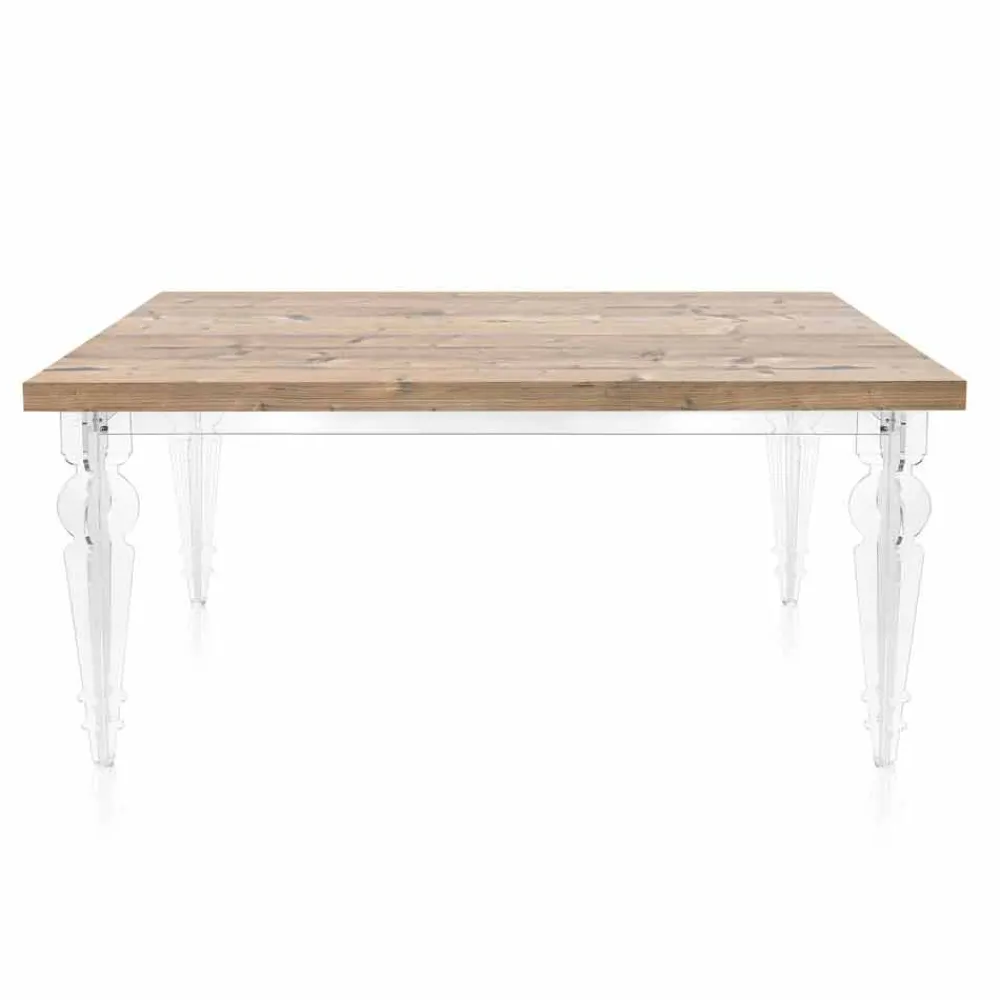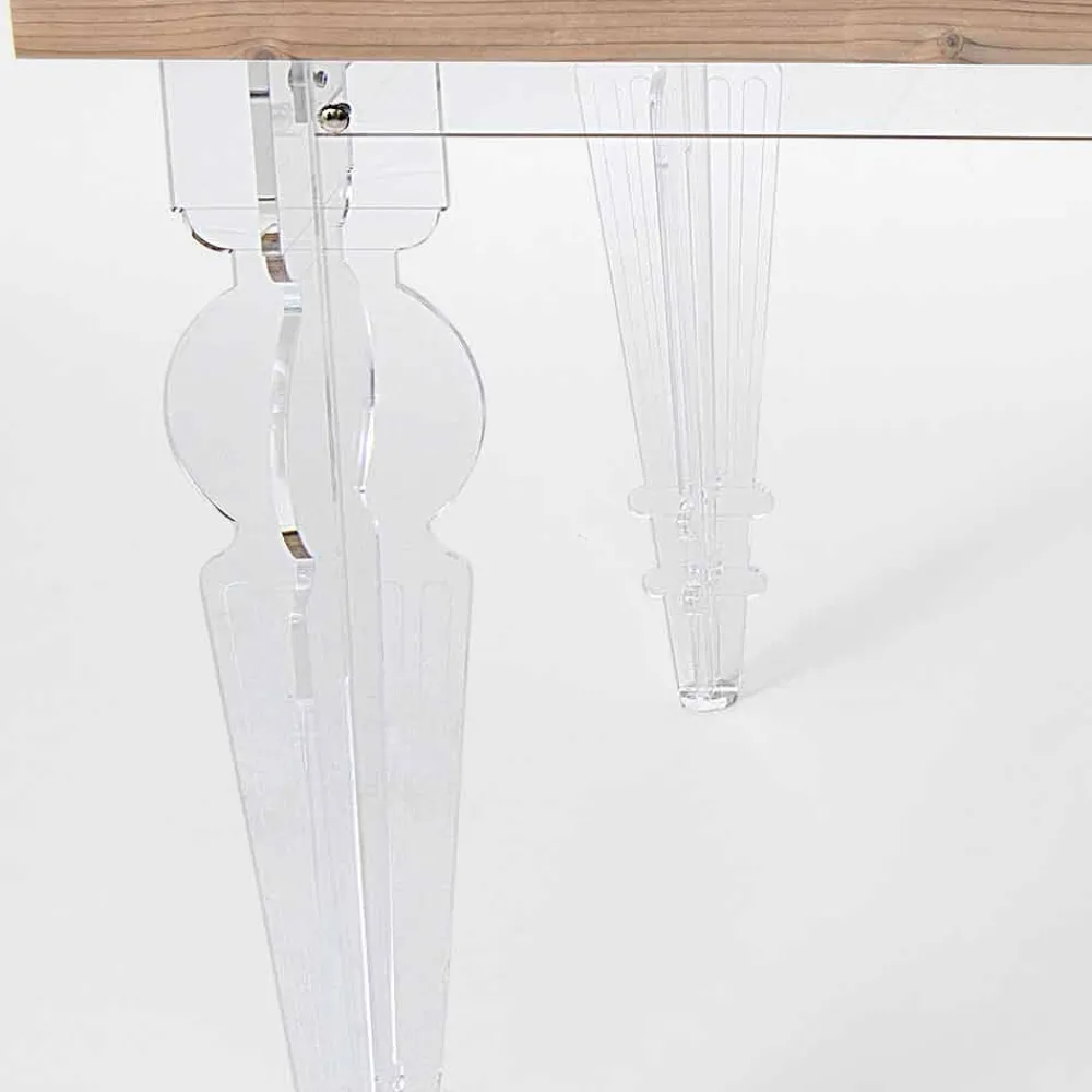Castro ist das perfekte Ergebnis der Kombination zweier hervorragender Materialien: Beine aus reinem Acrylkristall-PMMA und Platte aus dunklem Fichtenholz mit mattem, natürlich gebürstetem Finish.