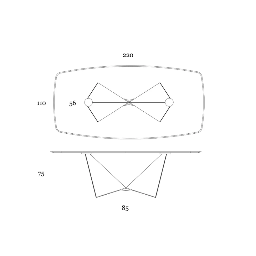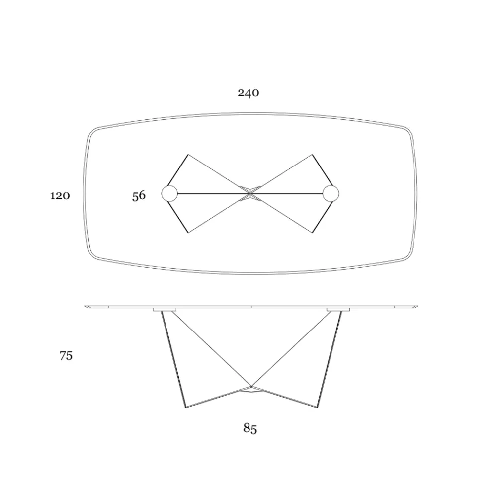 Es zeichnet sich durch unerwartete Formen und elegantes Design aus. Er verfügt über eine Keramikplatte, die von einem pulverbeschichteten Metallsockel getragen wird. Das harmonische Design mit geschwungenen Linien an der Oberseite und perfekten Kanten an der Basis sorgt für eine Ausgewogenheit, die der Umgebung einen Hauch von Eleganz verleiht.