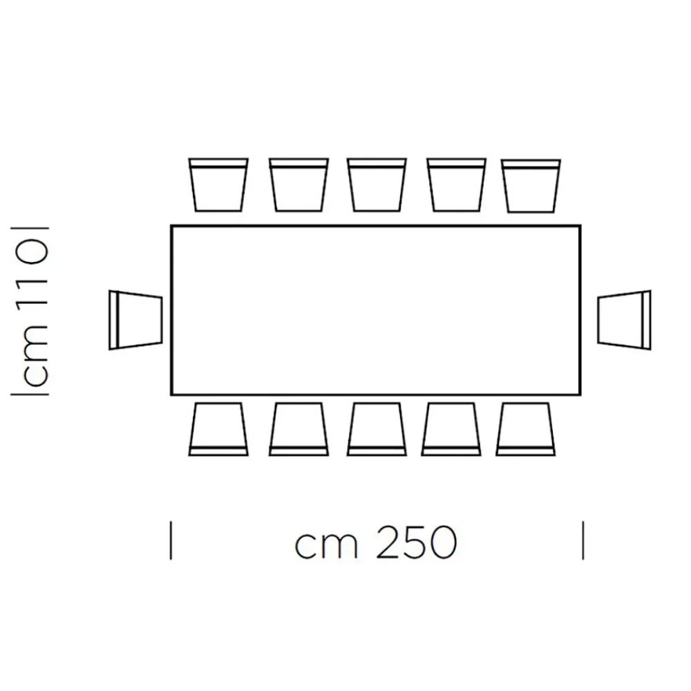 - L 250 x T 110 x H 75,5 cm (12 Sitzplätze).