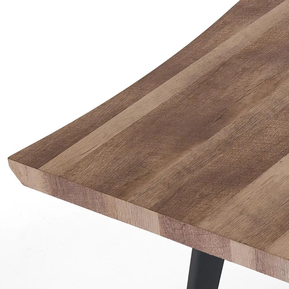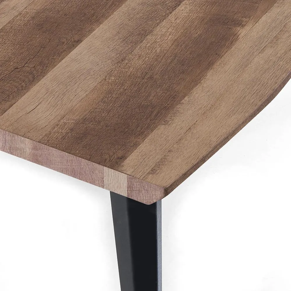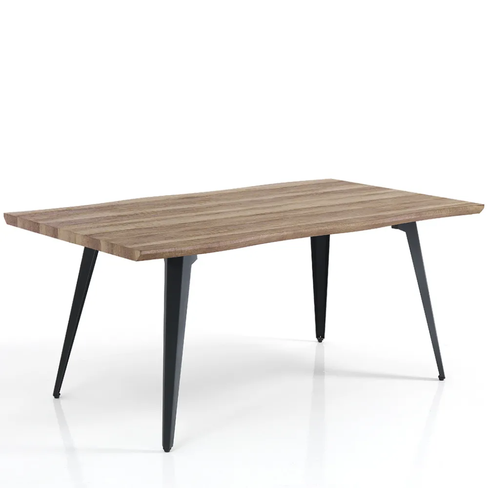 Esstisch mit MDF-Platte und schwarzen Stahlbeinen.