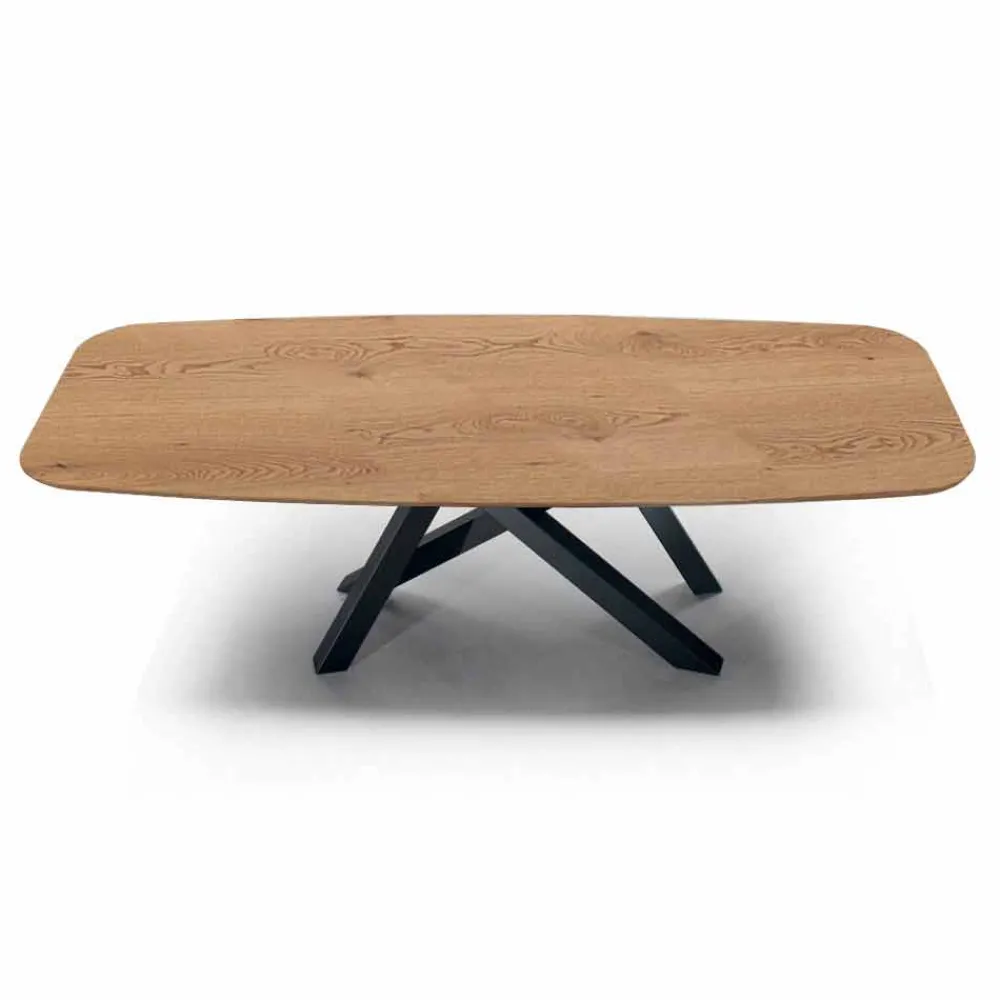 Esstisch mit tonnenförmiger Platte aus luxuriösem HPL-Laminat Made in Italy.