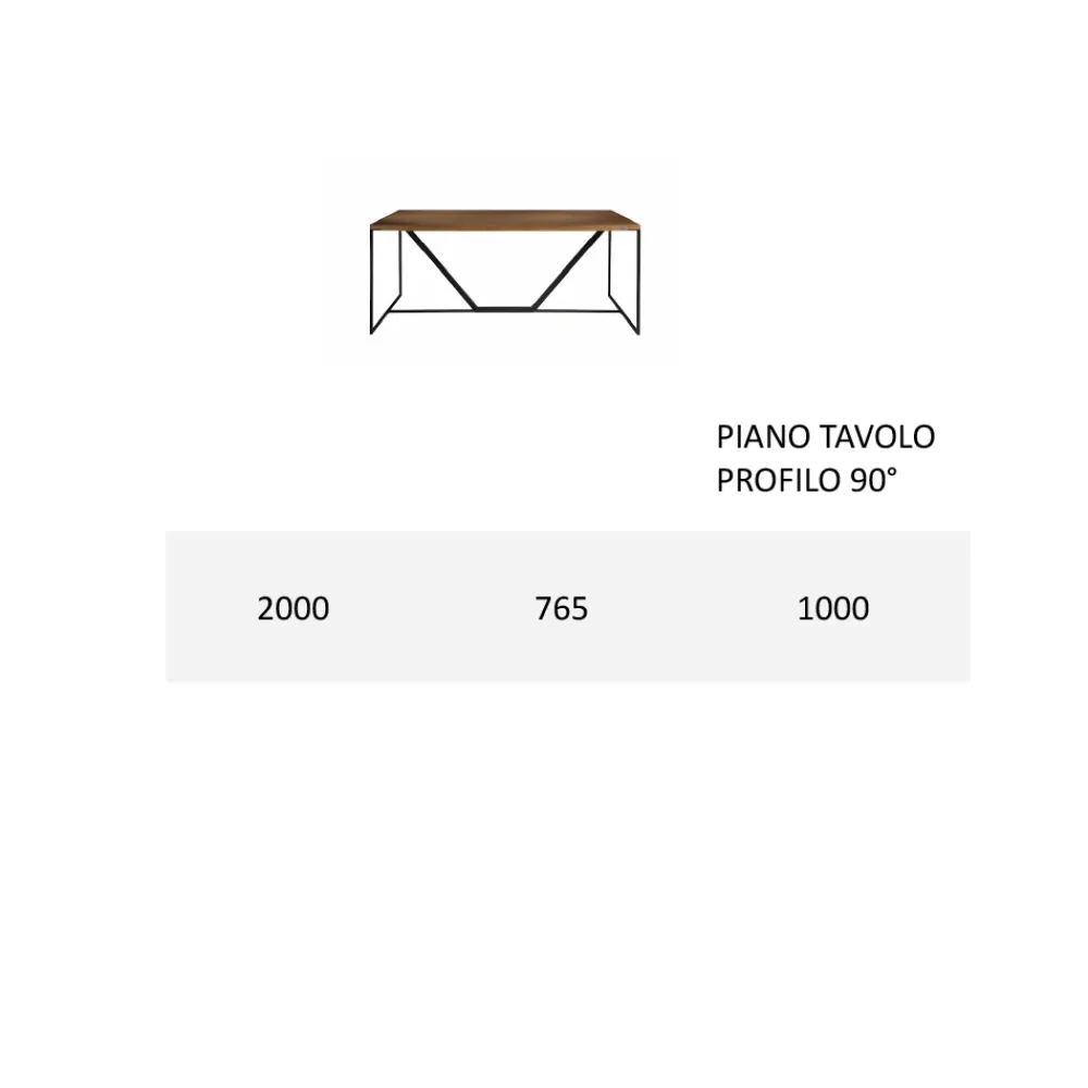 Dieser zu 100 % in Italien hergestellte Esstisch verfügt über eine Massivholzplatte mit einer Struktur, die aus einem röhrenförmigen Träger aus kohlefarbenem Eisen besteht, der von einem trapezförmigen Einsatz aus massivem Tulpenholz begleitet wird.