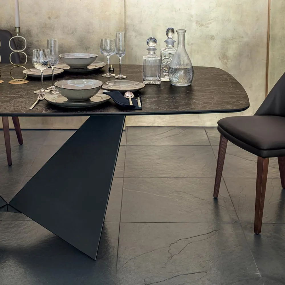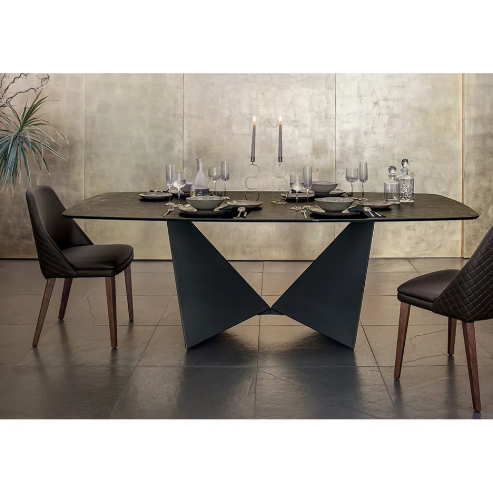 Esstisch mit Metallgestell und matter Keramikplatte in verschiedenen Ausführungen made in Italy.
