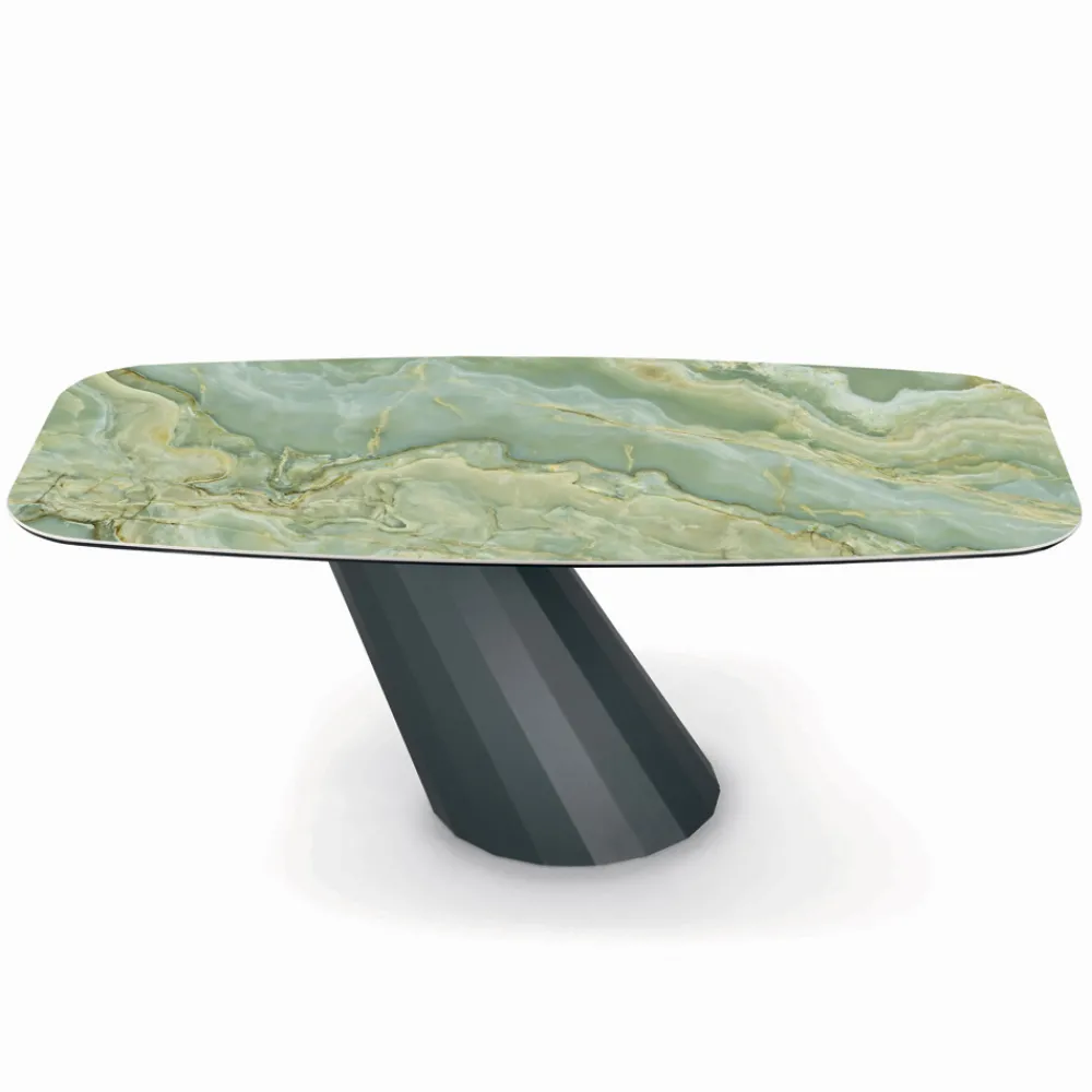 Dieses Produkt strahlt große Eleganz aus und wird zum Protagonisten jeder Umgebung . Durch die Verfeinerung der Form des Untergestells in Kombination mit der von Ihnen gewählten Oberfläche der Tischplatte entsteht ein einzigartiger Tisch mit großer optischer Wirkung, der Alltags- und Objektumgebungen mit Geschmack und Raffinesse einrichtet. Die Auswahl hochwertiger Materialien und die Liebe zur Gestaltung jedes einzelnen Details schaffen ein Produkt von ausgezeichneter Qualität „Made in Italy“.