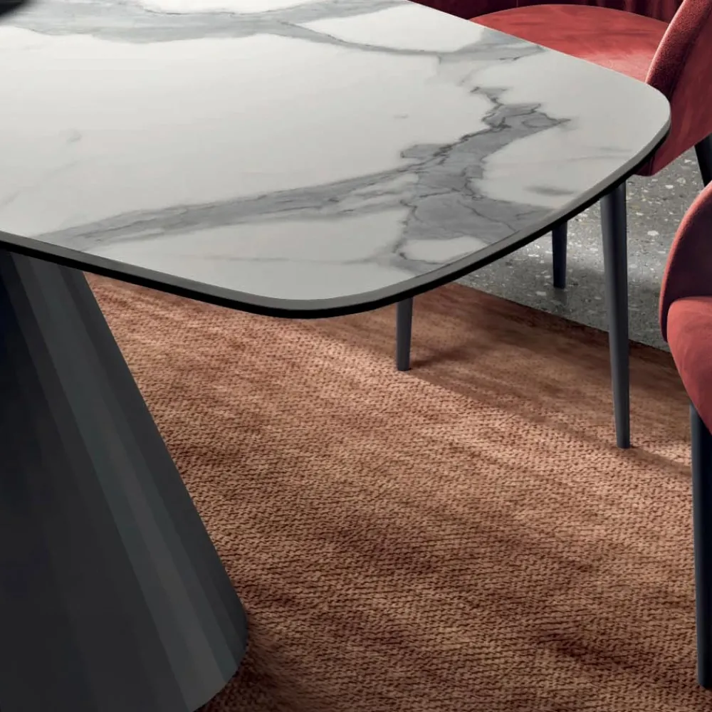 Die Auswahl hochwertiger Materialien und die Liebe zur Gestaltung jedes einzelnen Details schaffen ein Produkt von ausgezeichneter Qualität „Made in Italy“ . Dank der Form des Gestells und der verfügbaren Ausführungen ist dieser Tisch der Protagonist jeder alltäglichen Objektumgebung und eine perfekte Idee für alle, die dem Raum eine elegante, prächtige und einzigartige Note verleihen möchten.