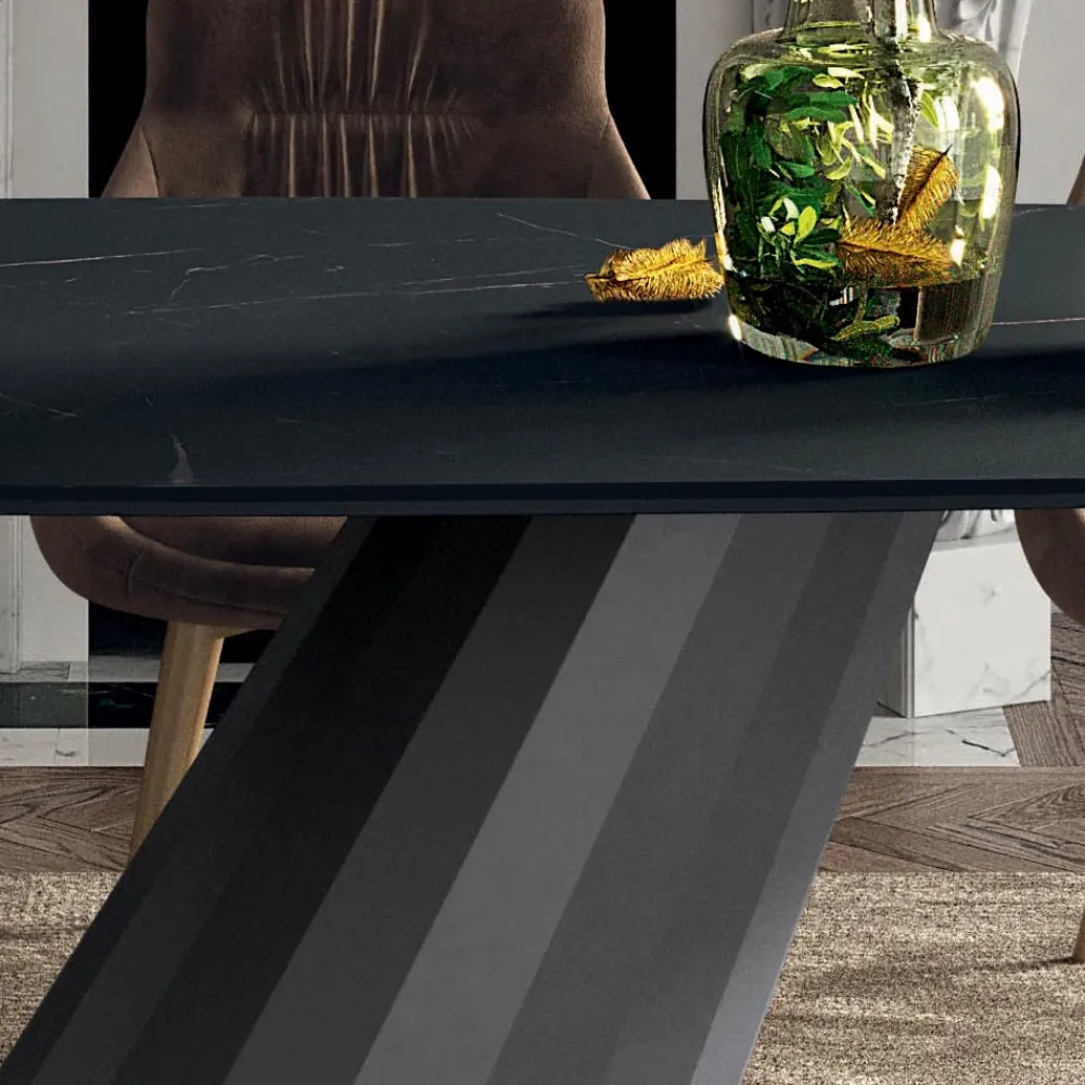 Dieses Produkt strahlt große Eleganz aus und wird zum Protagonisten jeder Umgebung . Durch die Verfeinerung der Form des Untergestells in Kombination mit der von Ihnen gewählten Oberfläche der Tischplatte entsteht ein einzigartiger Tisch mit großer optischer Wirkung, der Alltags- und Objektumgebungen mit Geschmack und Raffinesse einrichtet. Die Auswahl hochwertiger Materialien und die Liebe zur Gestaltung jedes einzelnen Details schaffen ein Produkt von ausgezeichneter Qualität „Made in Italy“.