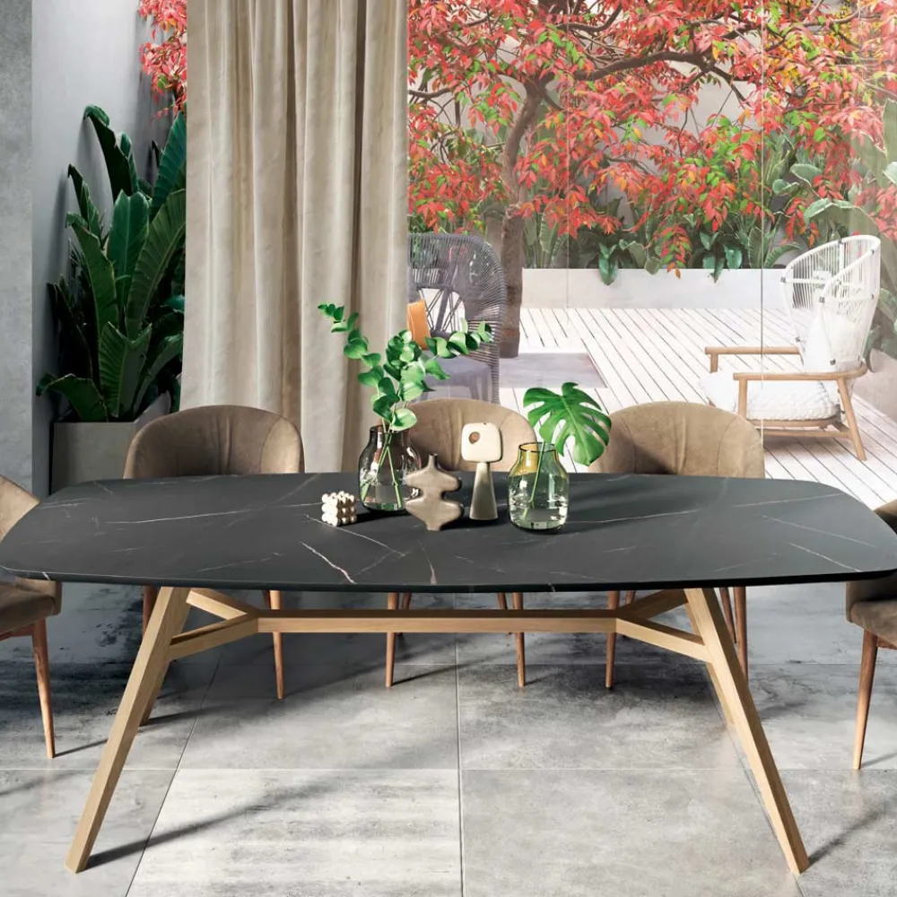Fester Tisch aus Holz und Laminat, hergestellt in Italien