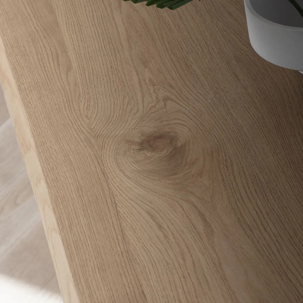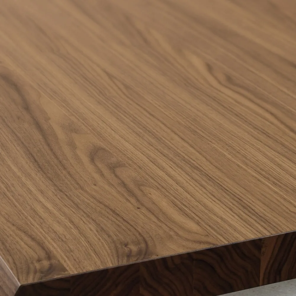 Das raffinierte und avantgardistische Design dieses Produkts wird durch die besondere Struktur der Beine einzigartig, die diesem Tisch einen schlanken und sonnigen Stil verleihen und die Platte fest und sicher stützen, wodurch ein widerstandsfähiges und funktionales Endprodukt entsteht. Die imposante Ästhetik des Holzes verbindet sich perfekt mit der modernen und funktionalen Note des Metalls und schafft so eine moderne und einladende Einrichtungslösung.