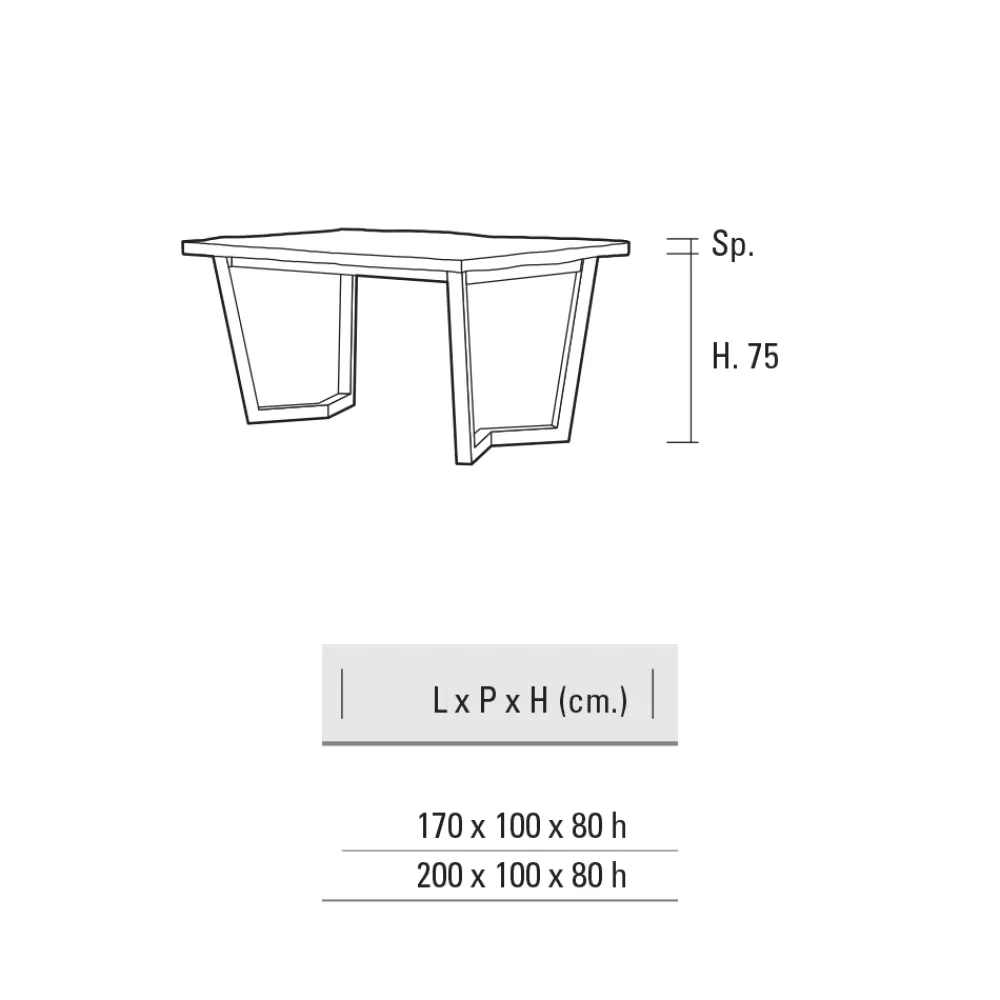 - L 200 x T 100 x H 80 cm.