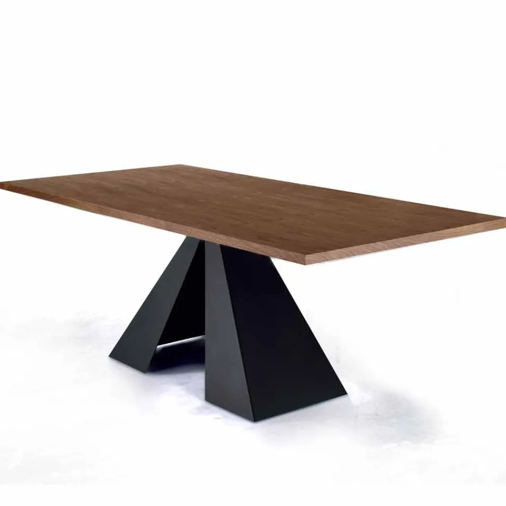 Esstisch mit furnierter Holzplatte und schwarz lackiertem Stahlgestell . Dieses wunderbare Einrichtungsaccessoire im zeitgenössischen Stil wird in Italien aus hochwertigen Rohstoffen hergestellt und zeichnet sich durch ein elegantes Design aus, das die Ästhetik jedes Esszimmers oder jeder modernen Küche revolutionieren kann und ihm eine exklusive und originelle Note verleiht. Der imposante Stahlsockel verleiht dem Produkt seine starke, raffinierte Persönlichkeit und sorgt gleichzeitig für eine solide und widerstandsfähige Struktur des Tisches, wodurch seine funktionale Seite maximiert wird. Was die Ästhetik des Produkts bereichert, ist die furnierte Holzplatte, die dem Tisch dank der wunderbaren und originellen Maserung des Holzes Charakter verleiht und sich durch zeitlose Eleganz auszeichnet.