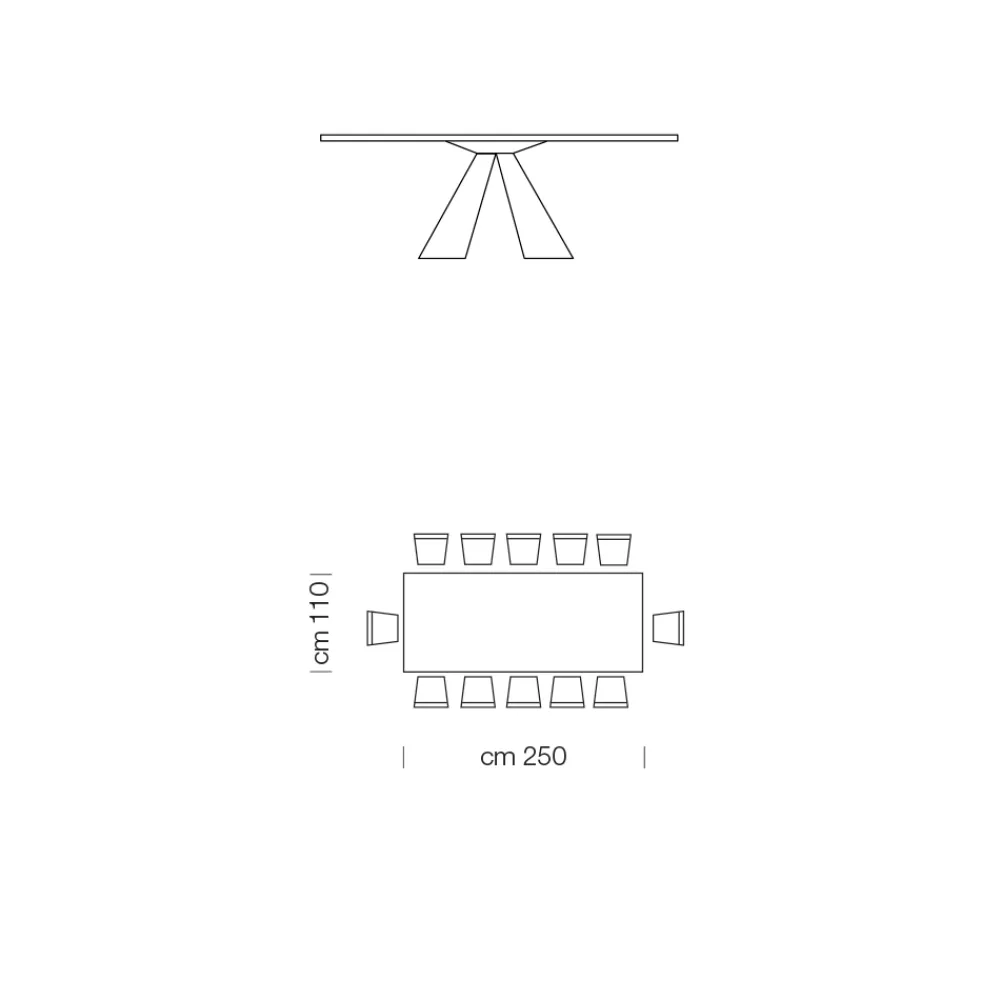 - L 250 x T 110 x H 75,5 cm (12 Sitzplätze).