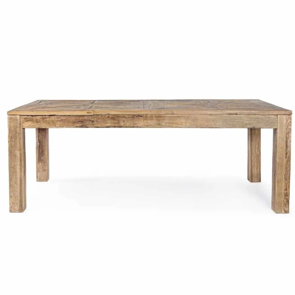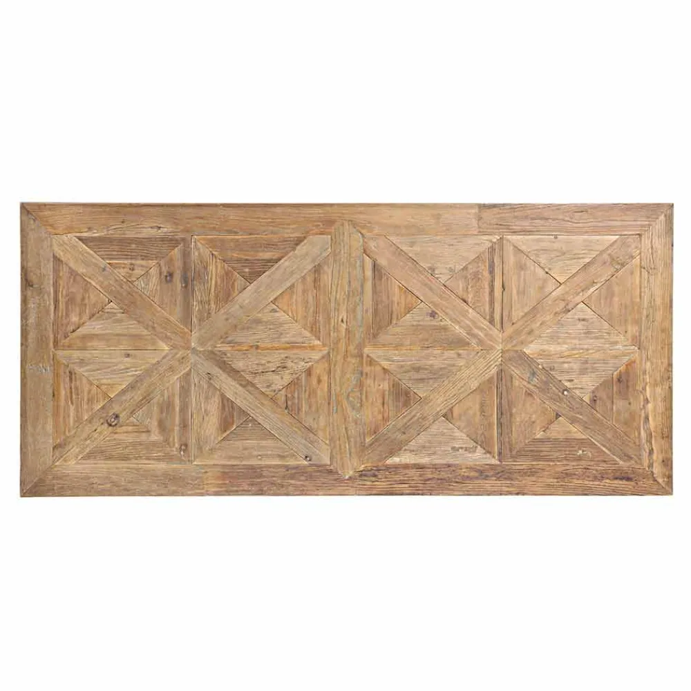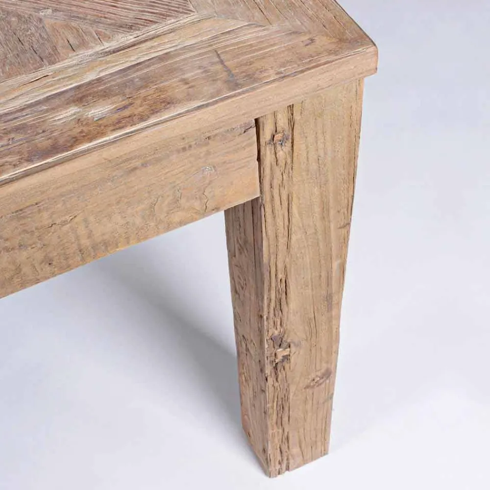Recyceltes Ulmenholz, gealterter Parkettboden. Beine in Nitrocellulosebasis.