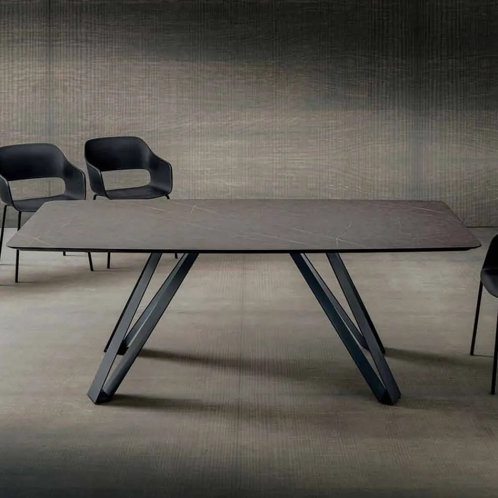 Esstisch aus geschichtetem HPL und anthrazitfarbenem Metall Made in Italy, hohe Qualität.