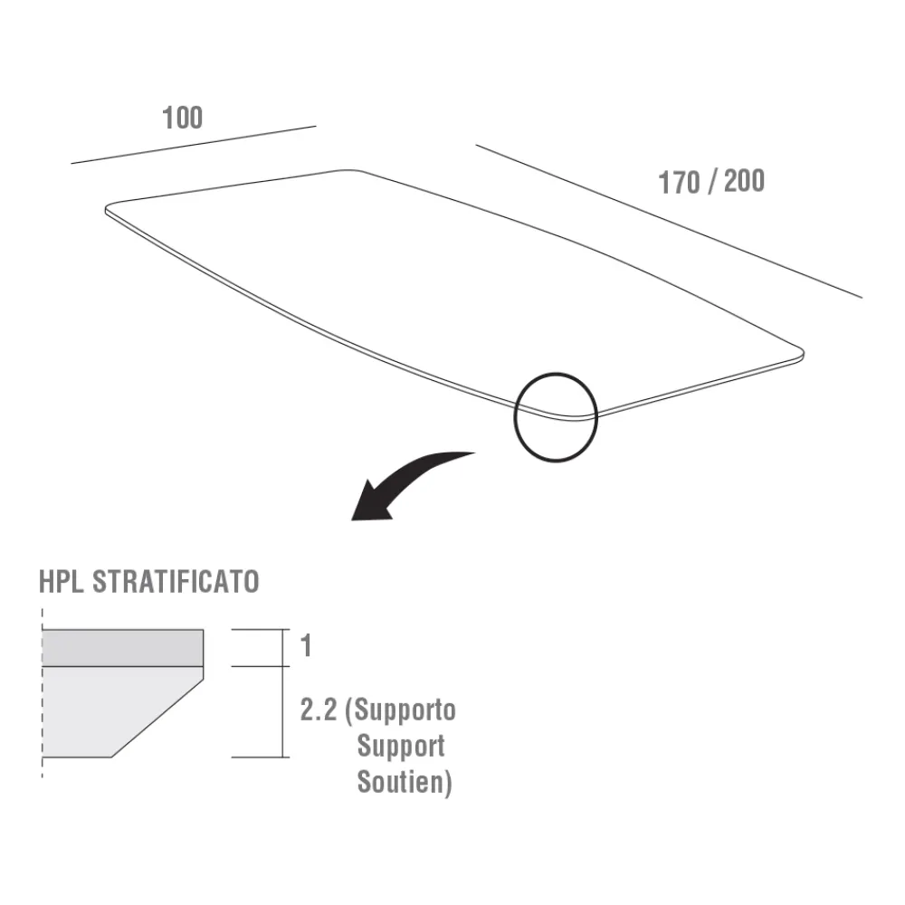 | Material Tischplatte | HPL |