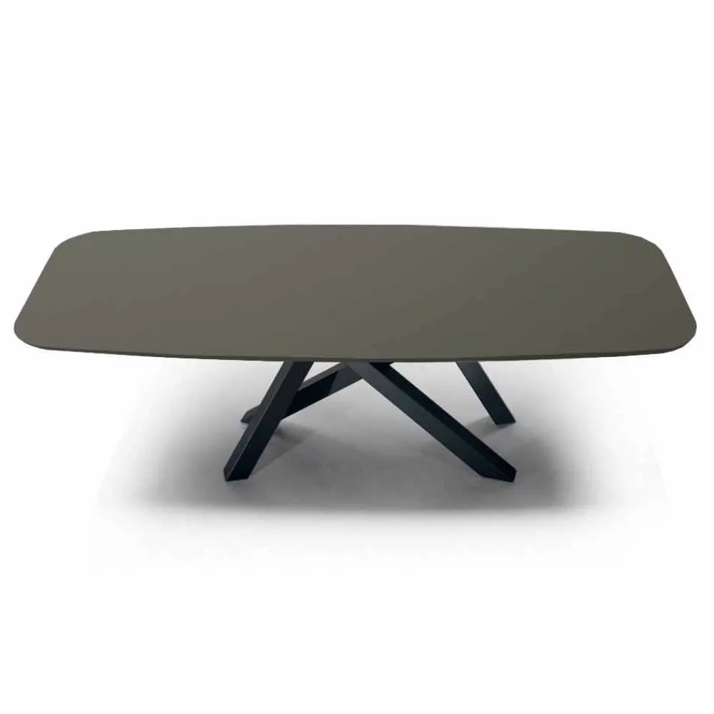 Tonnenförmiger Esstisch, hergestellt in Italien aus edlem Fenix und lackiertem Stahl.
