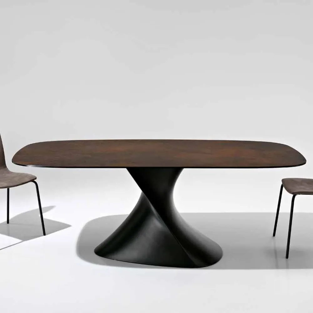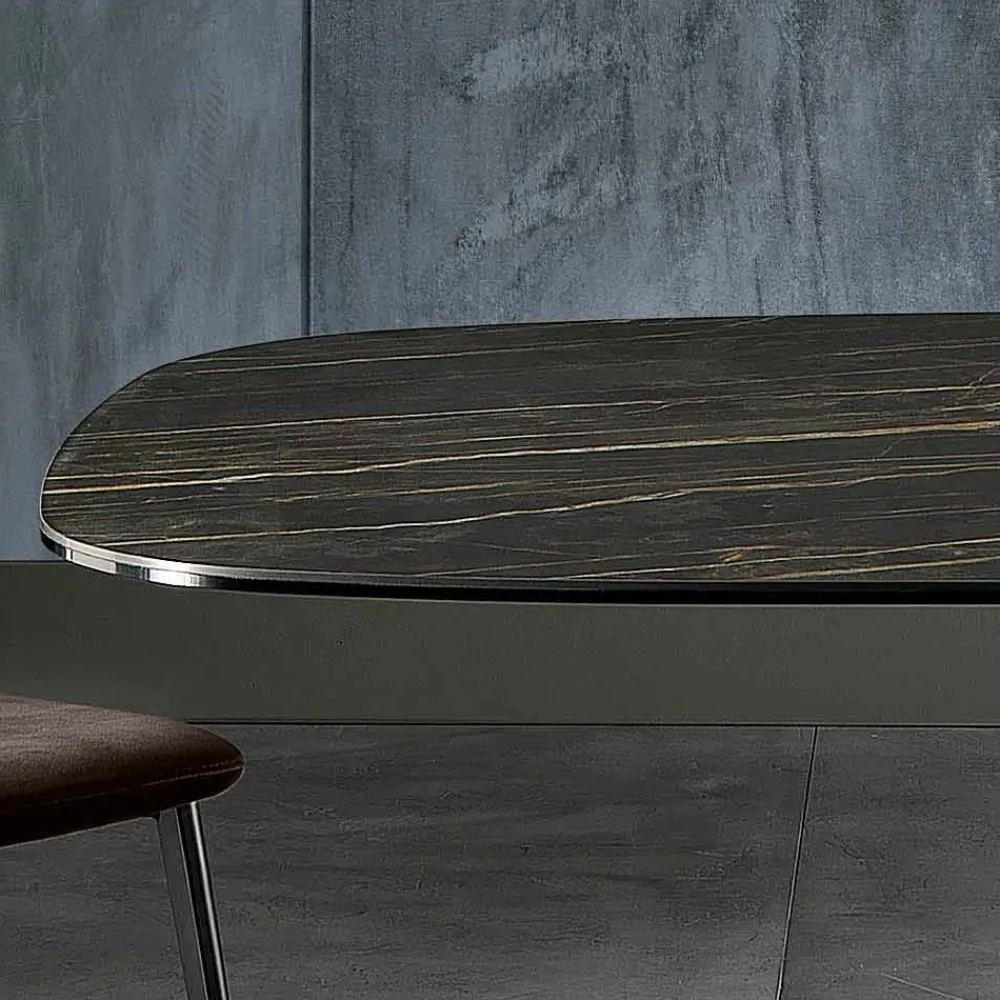 Viadurini Living Esstische-Fester Fasstisch aus glänzendem Calacatta-Schwarz-Laminam – Dialogo