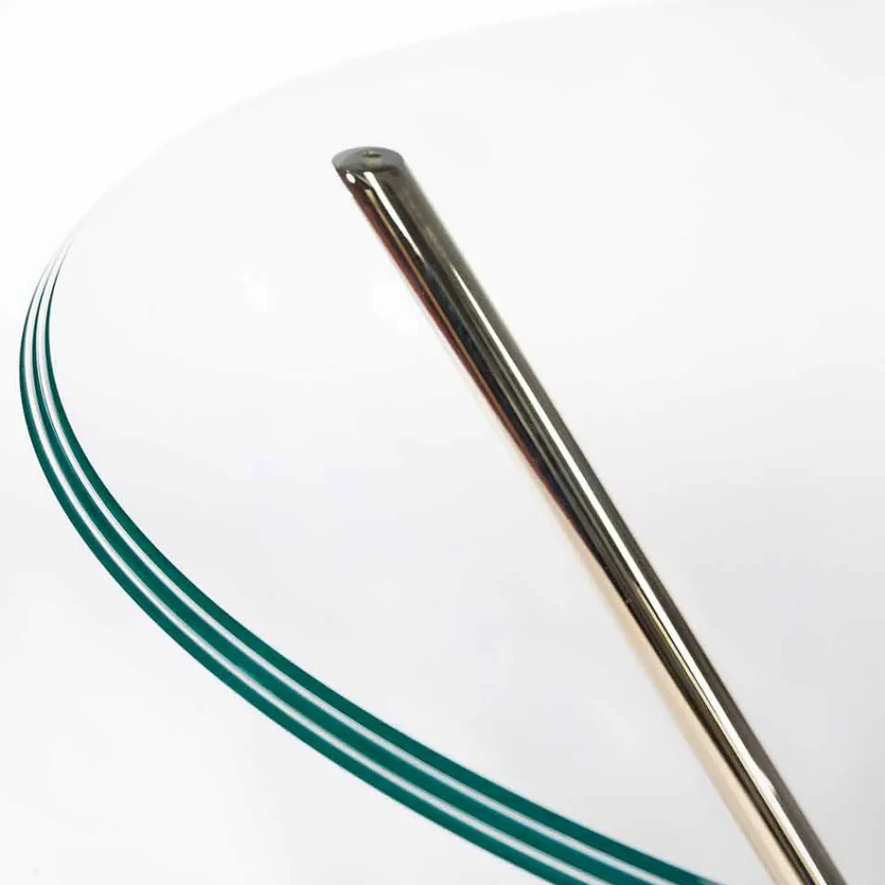 Runder Tisch mit extra klarer Platte (4 mm Stärke), abgeschrägten Kanten.