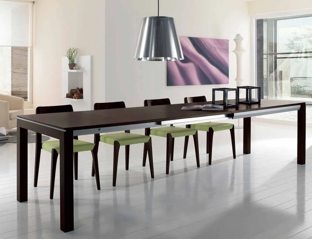 Der ausziehbare Küchentisch Ketla zeichnet sich durch ein modernes und leichtes Design in Verbindung mit großzügigen und funktionalen Formen aus, sodass er zu jedem Stil und jeder Umgebung passt.